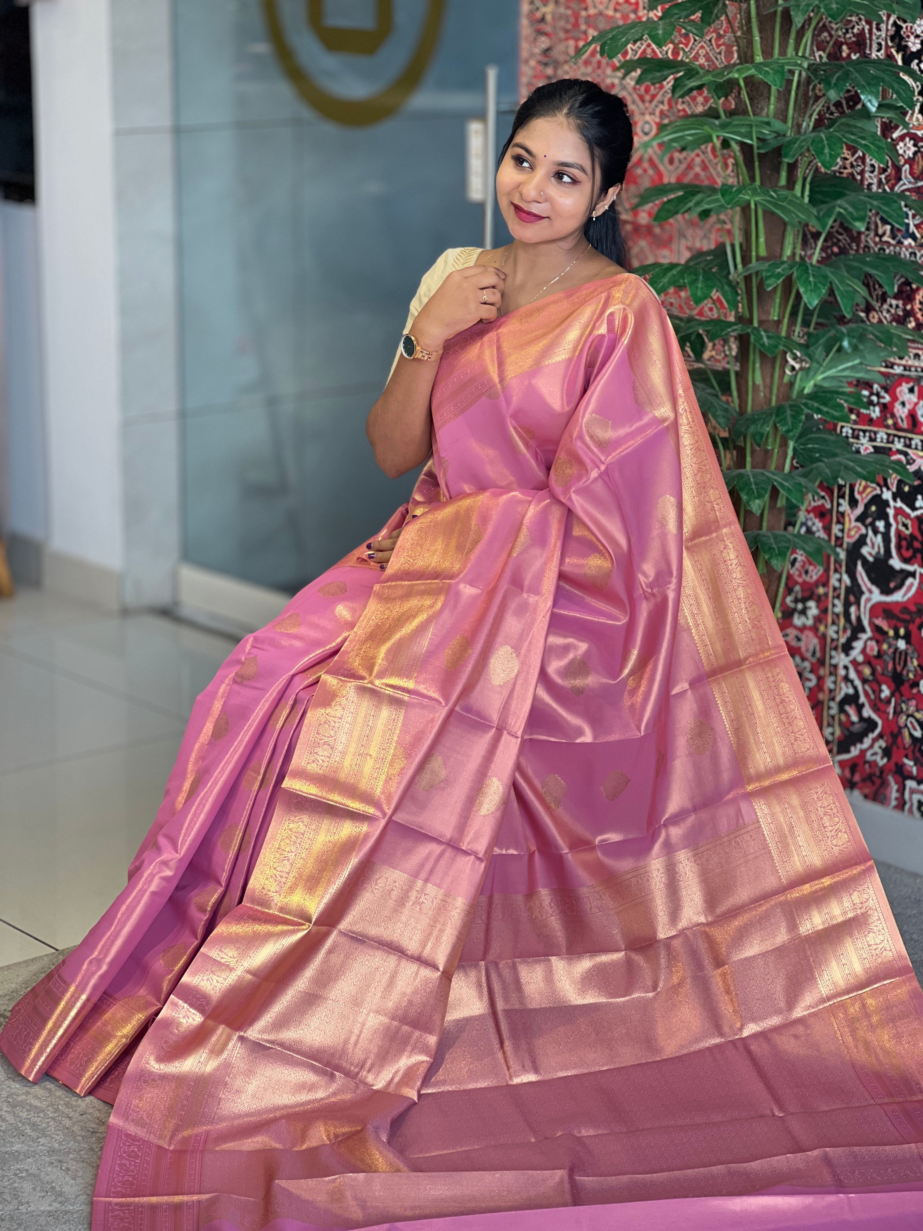 - Style: Scattered Zari Motif Pattern, Tissue Weving, Zari Weaving Pattern Border, Brocade Pattern pallu