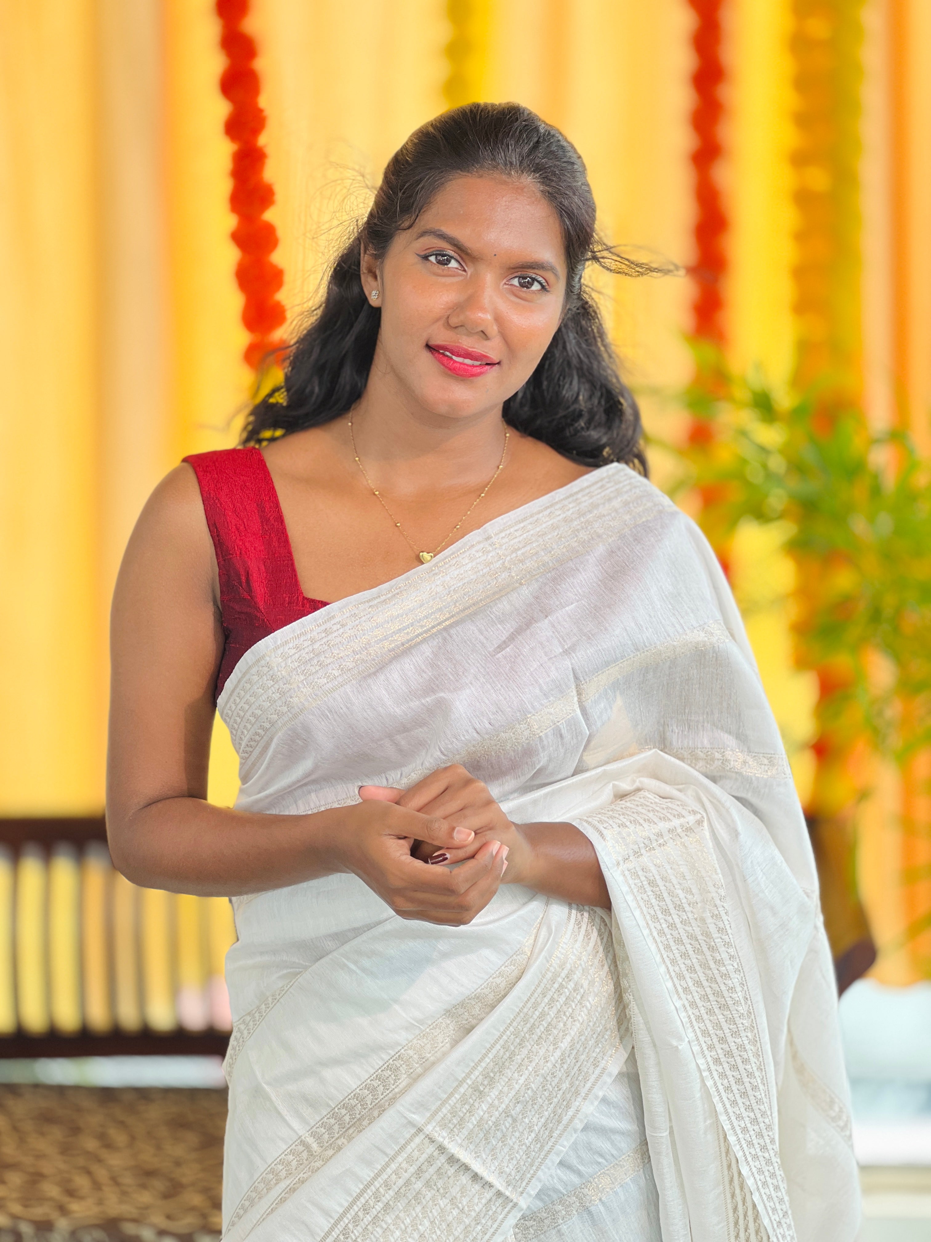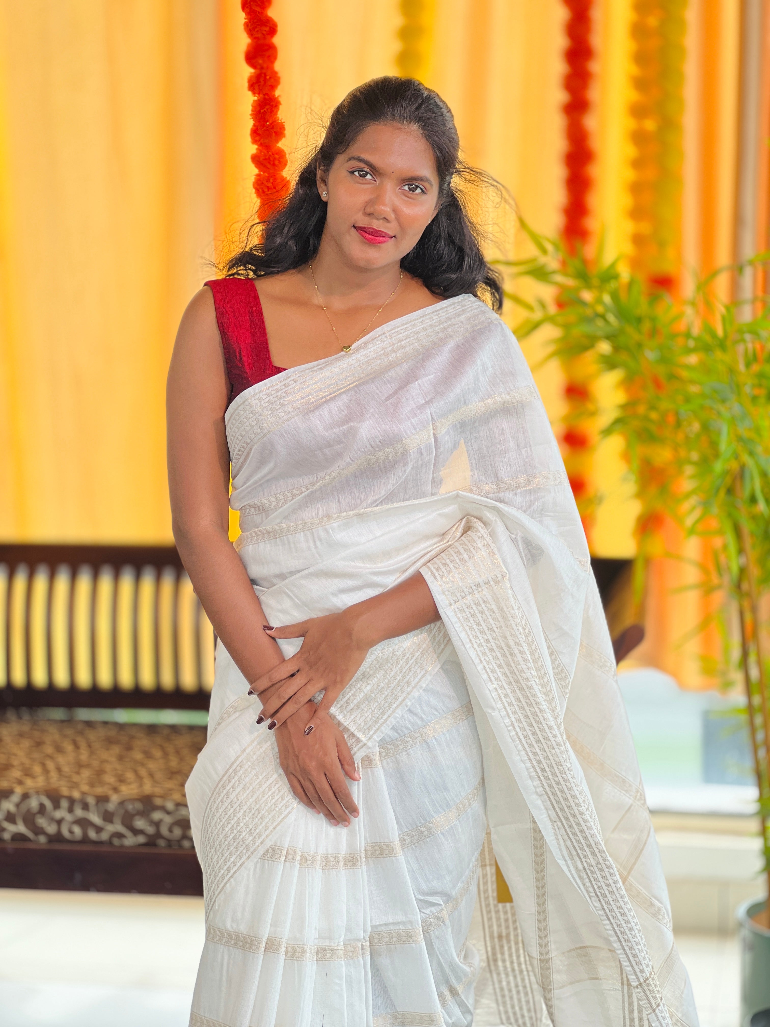 - Style: Zari Borders, Golden Zari Weaved Stripe Pattern, Tassels Detailing