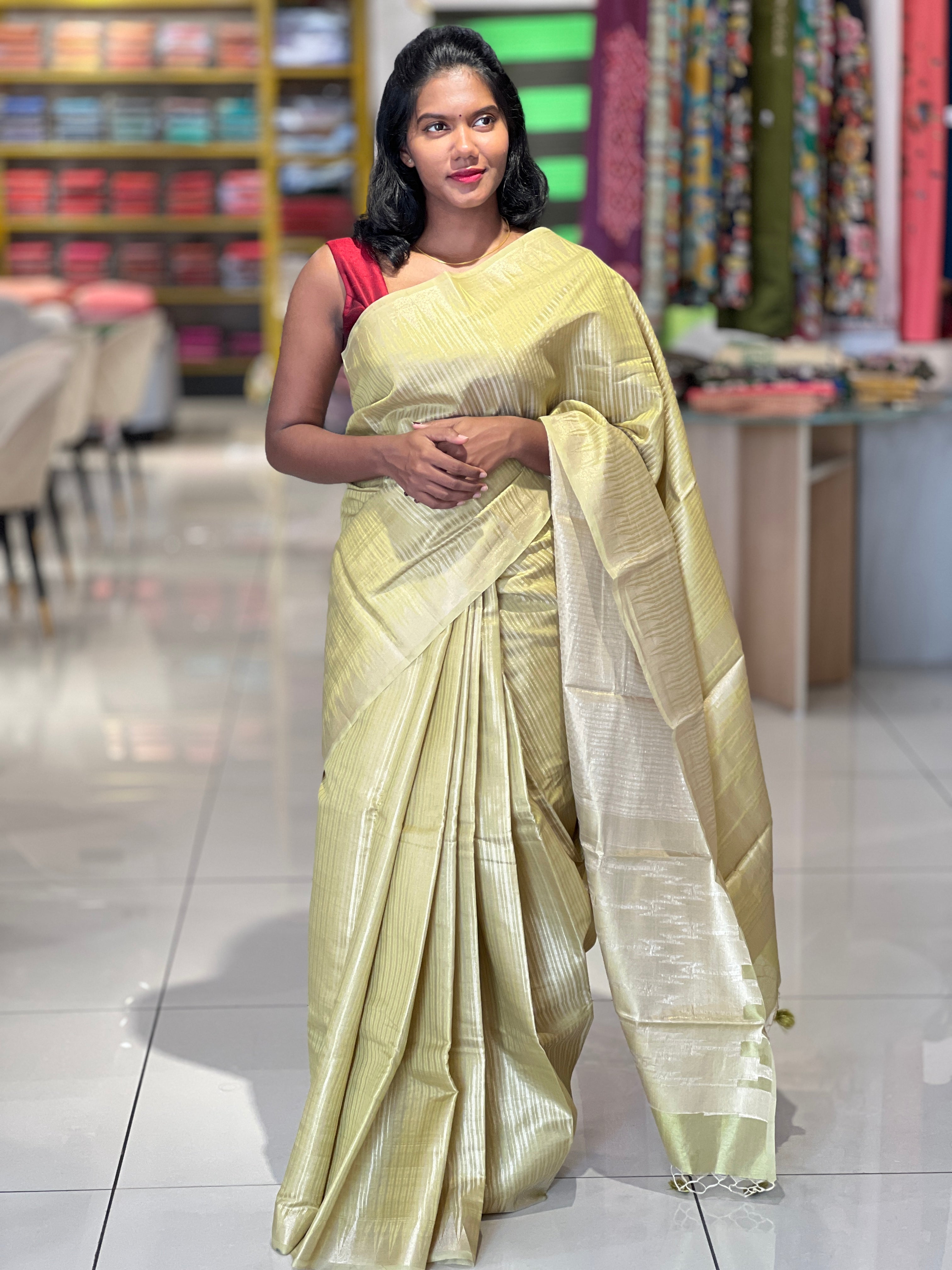 • Style: Zari Stripe Weaving Pattern, Temple Borders, Zari Woven Pallu, Tassels Detailing