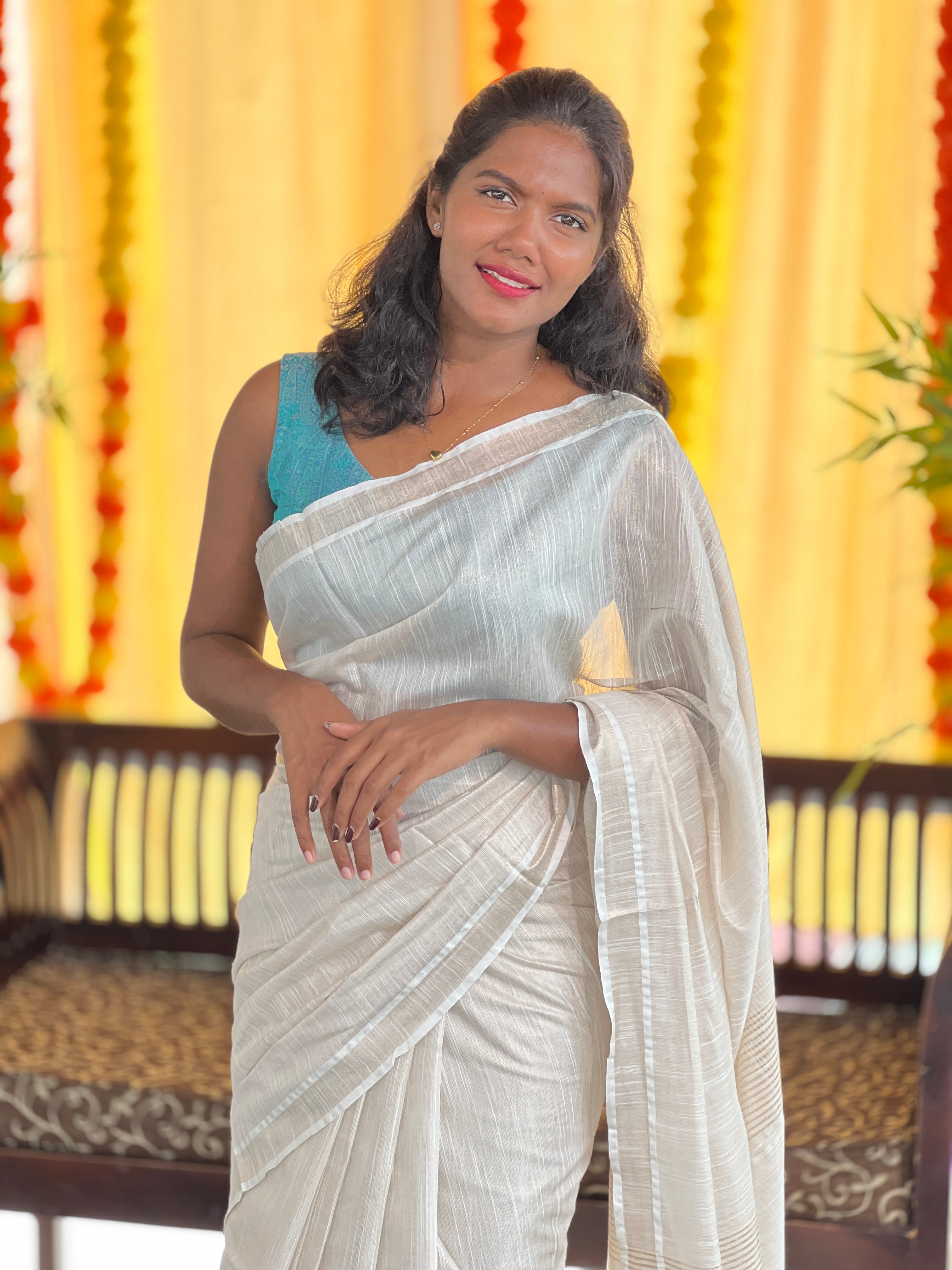- Style: Tissue Weaved, Zari Borders, Golden Zari Stripe Weaved Pallu, Tassels Detailing