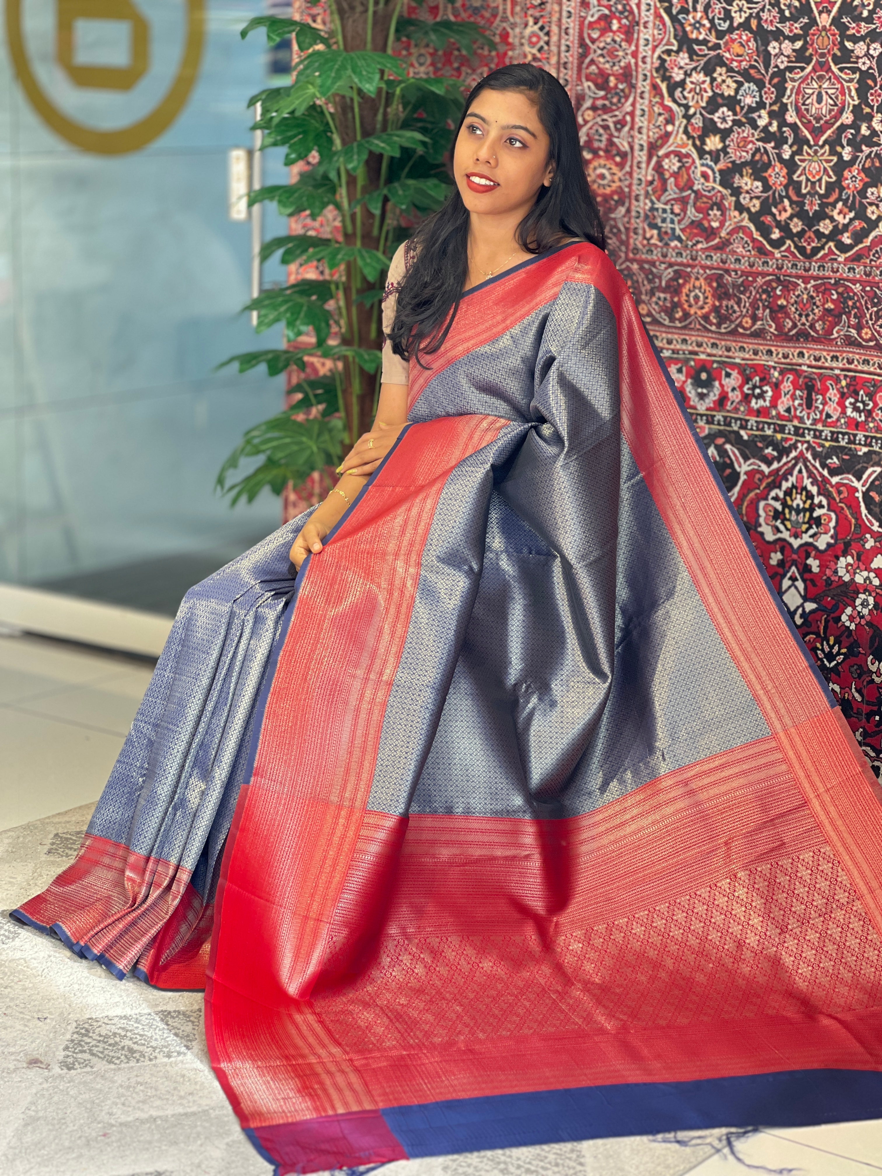 - Style: Zari Weaved, Geometric Brocade Patterned Body, Contrast Traditional Patterned Pallu & Borders