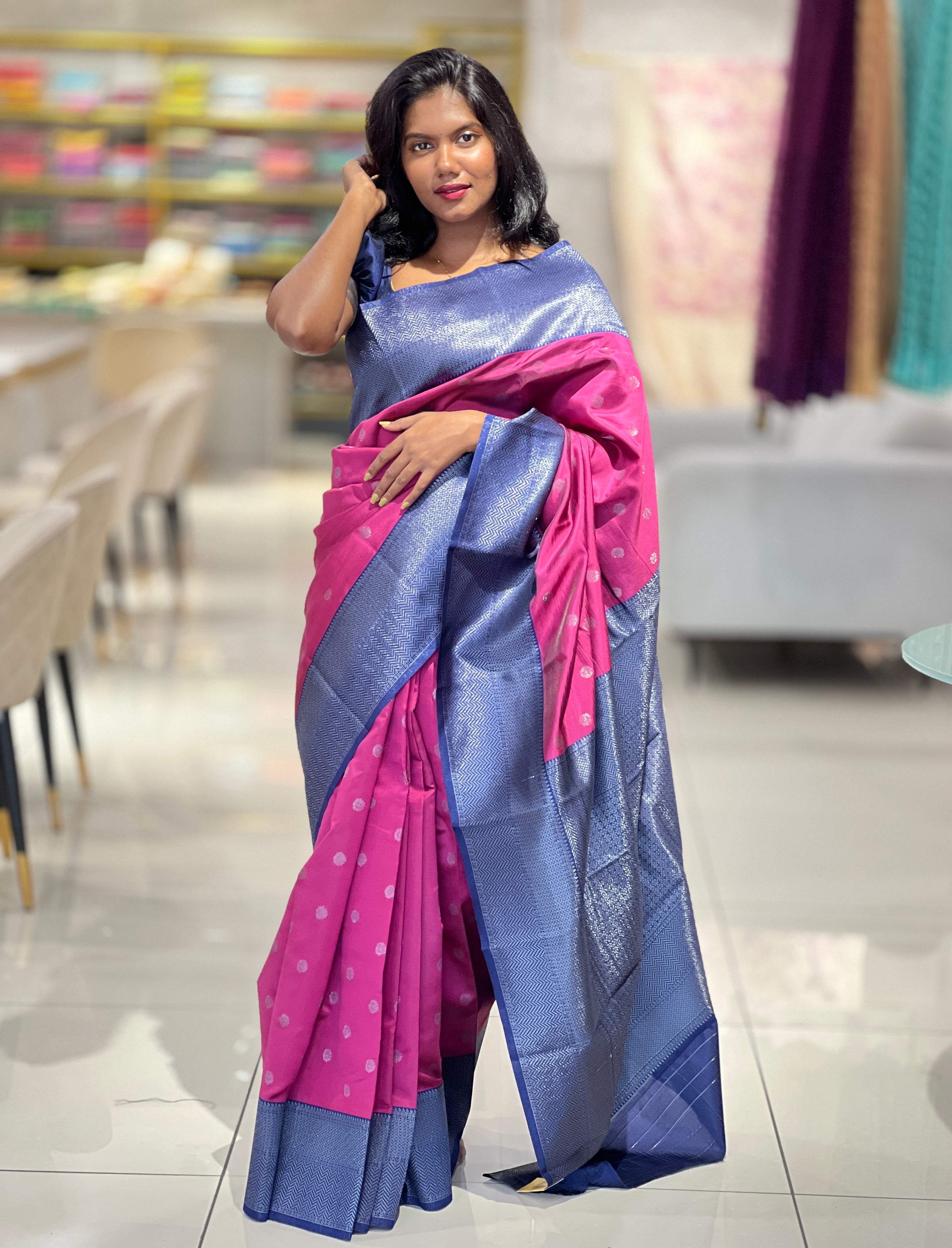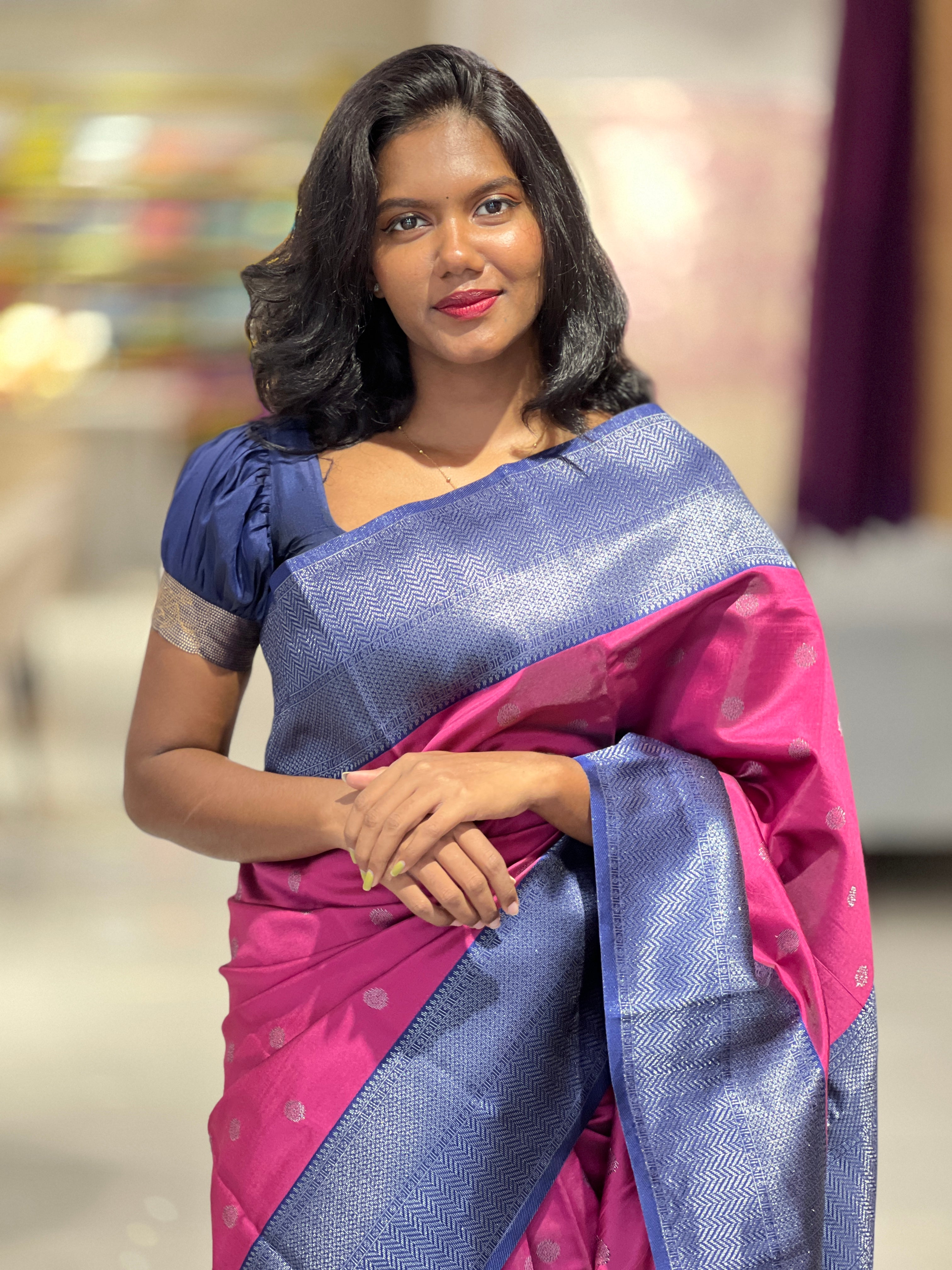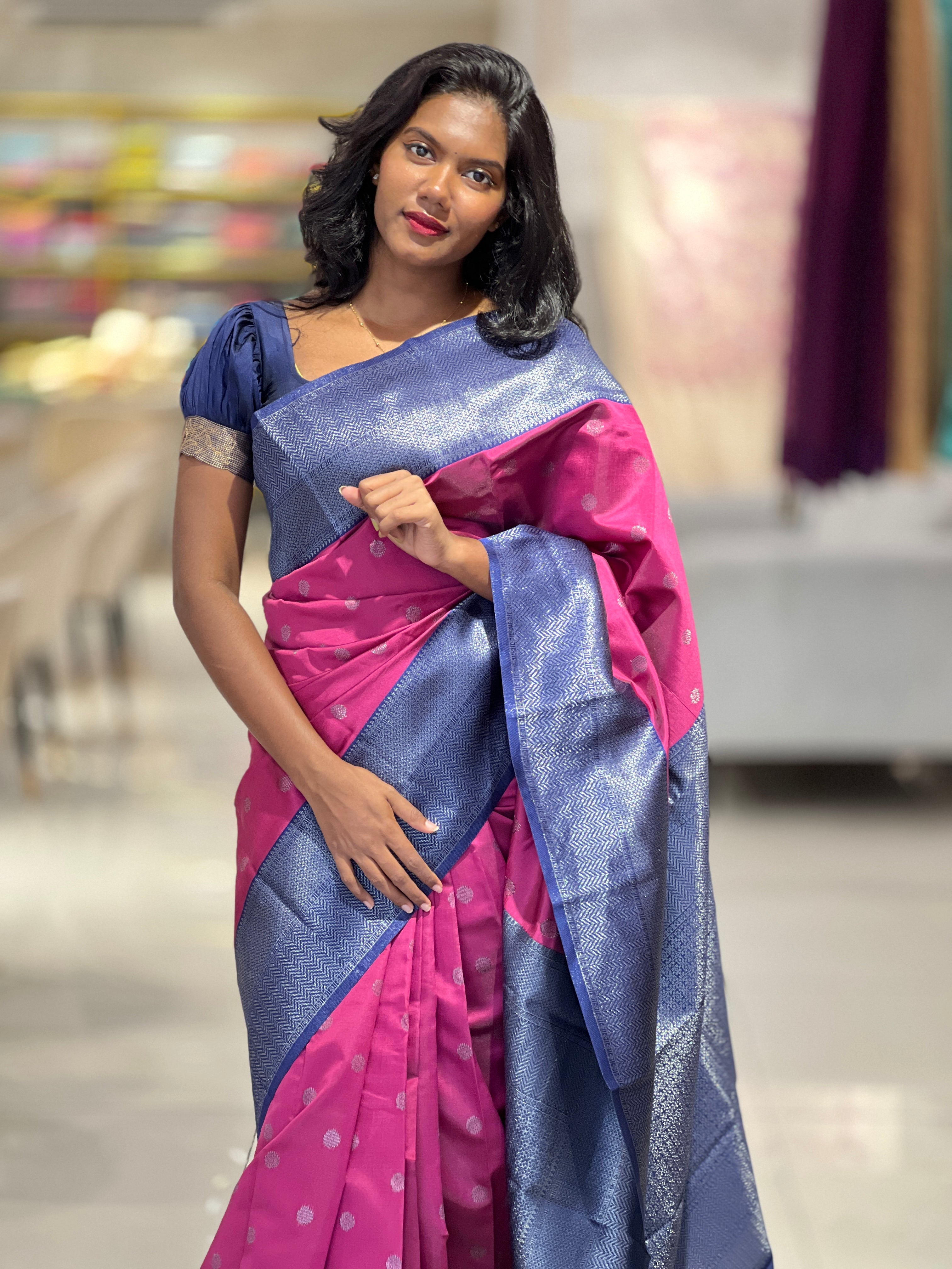 - Style: Zari Weaved, Scattered Buttas Detailing, Brocade Pallu, Border Detailing