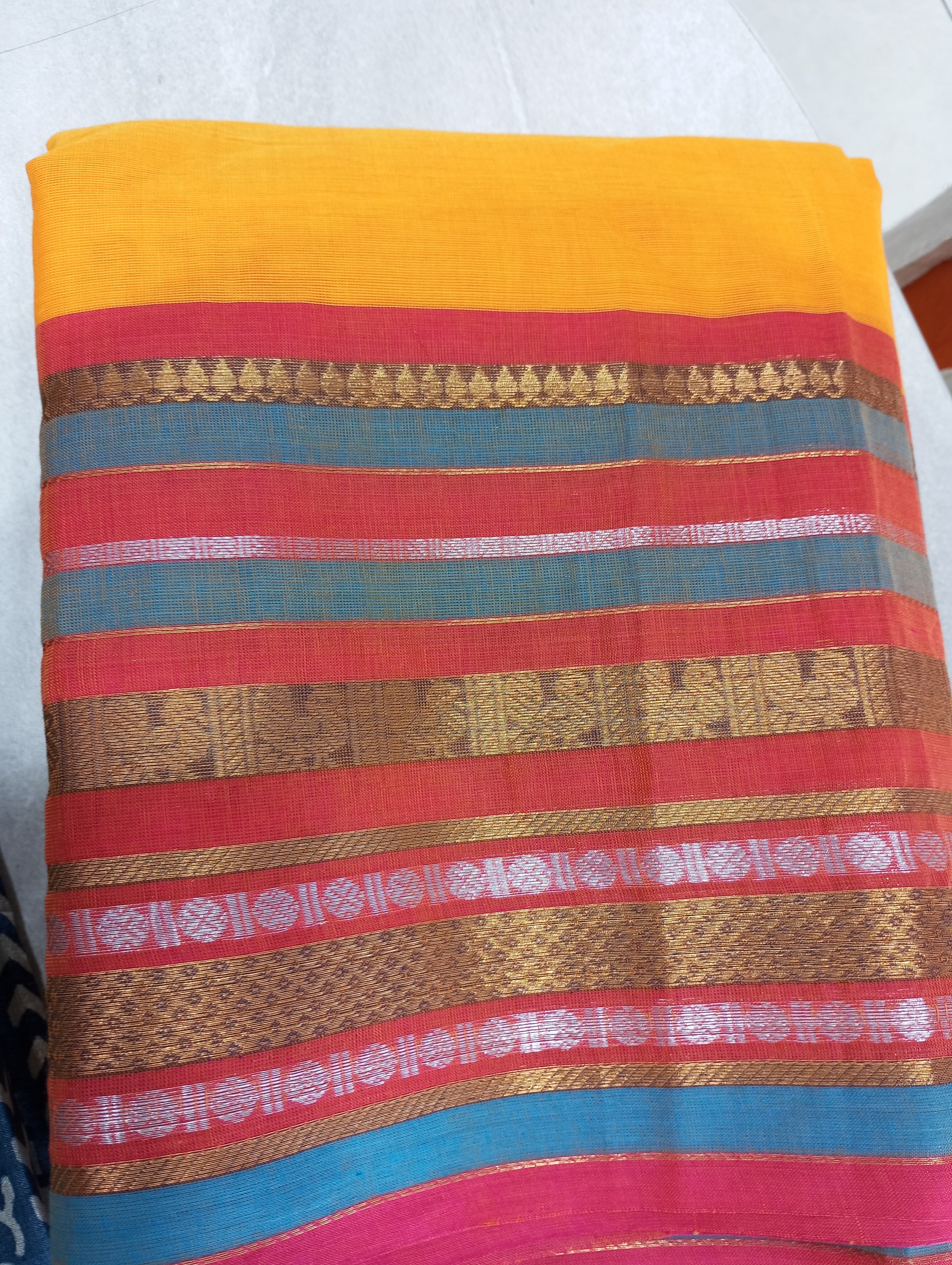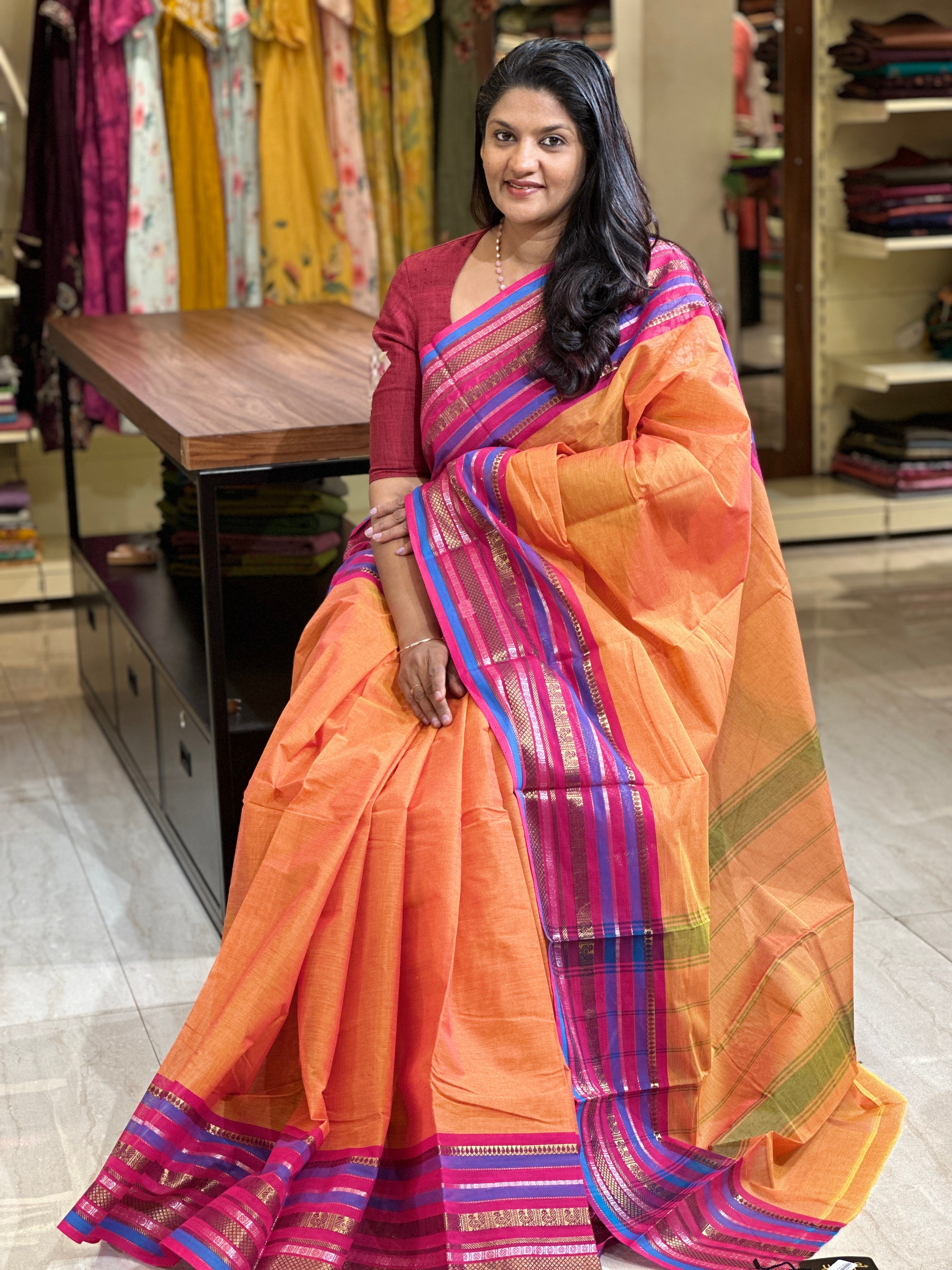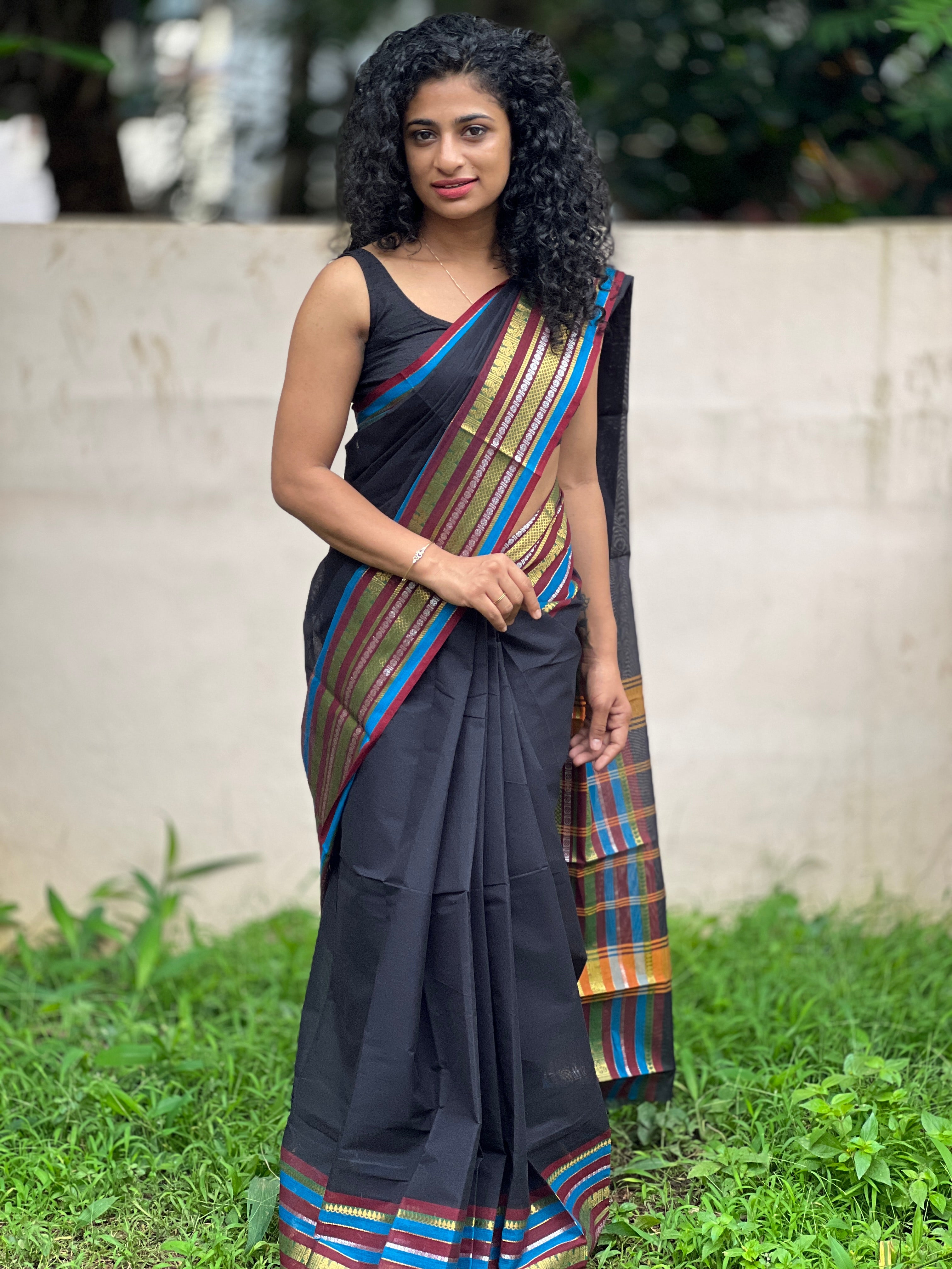 - Style: Zari Weaved Border Detailing, Stripe Patterned Pallu