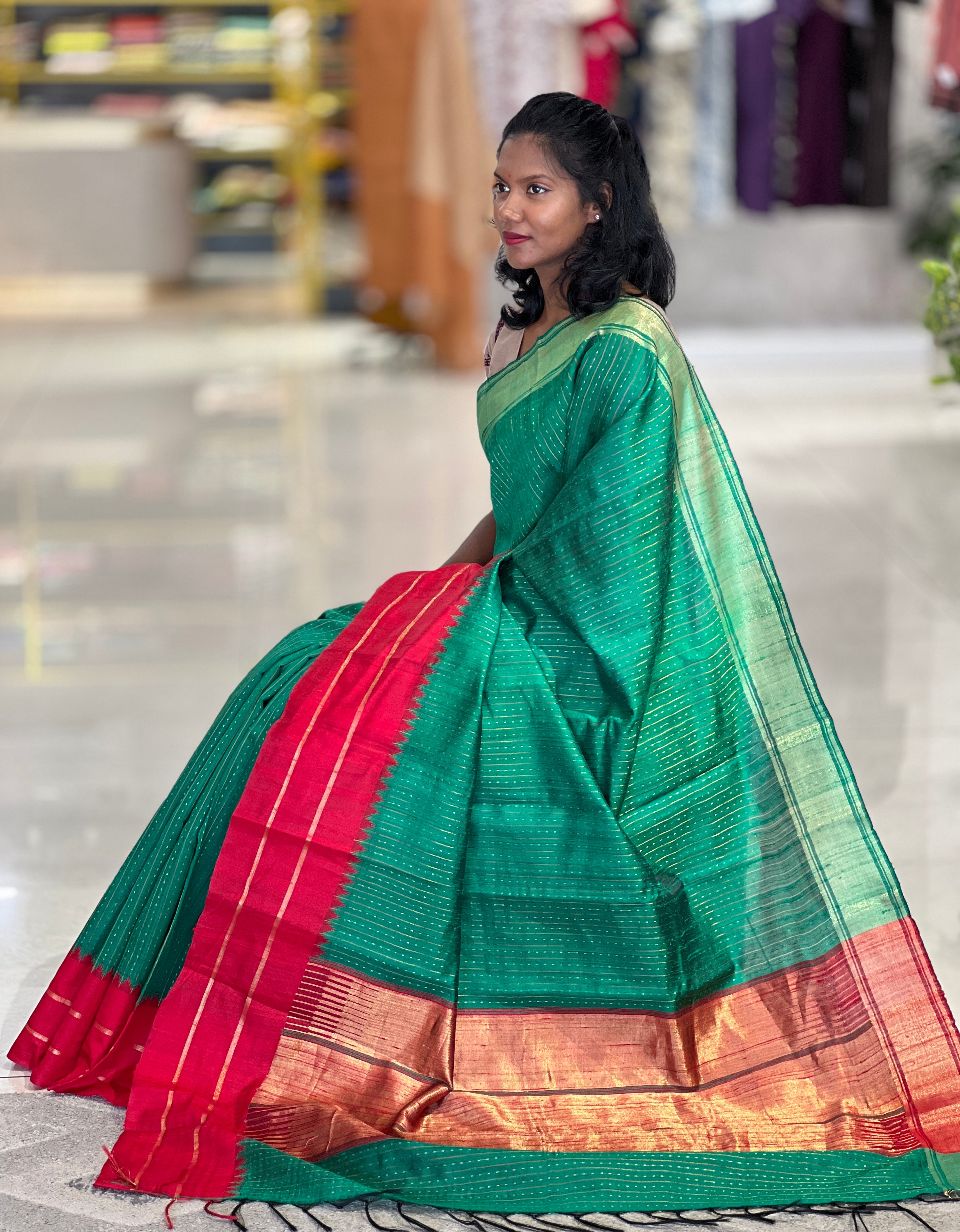 - Style: Vertical Zari weaving Pattern, Temple Border