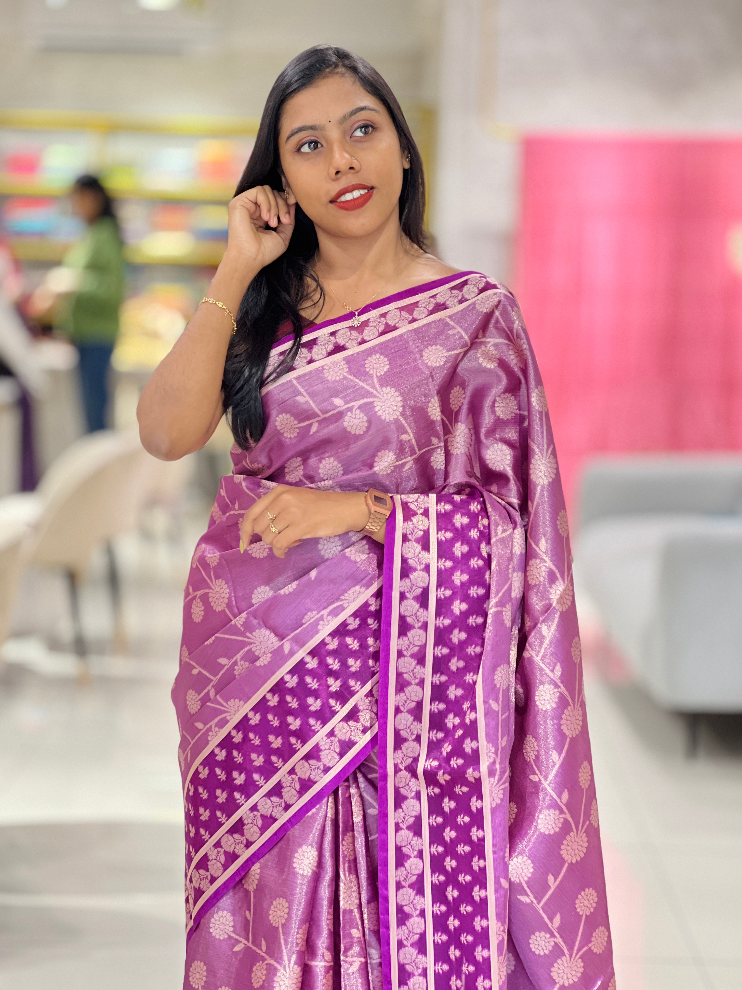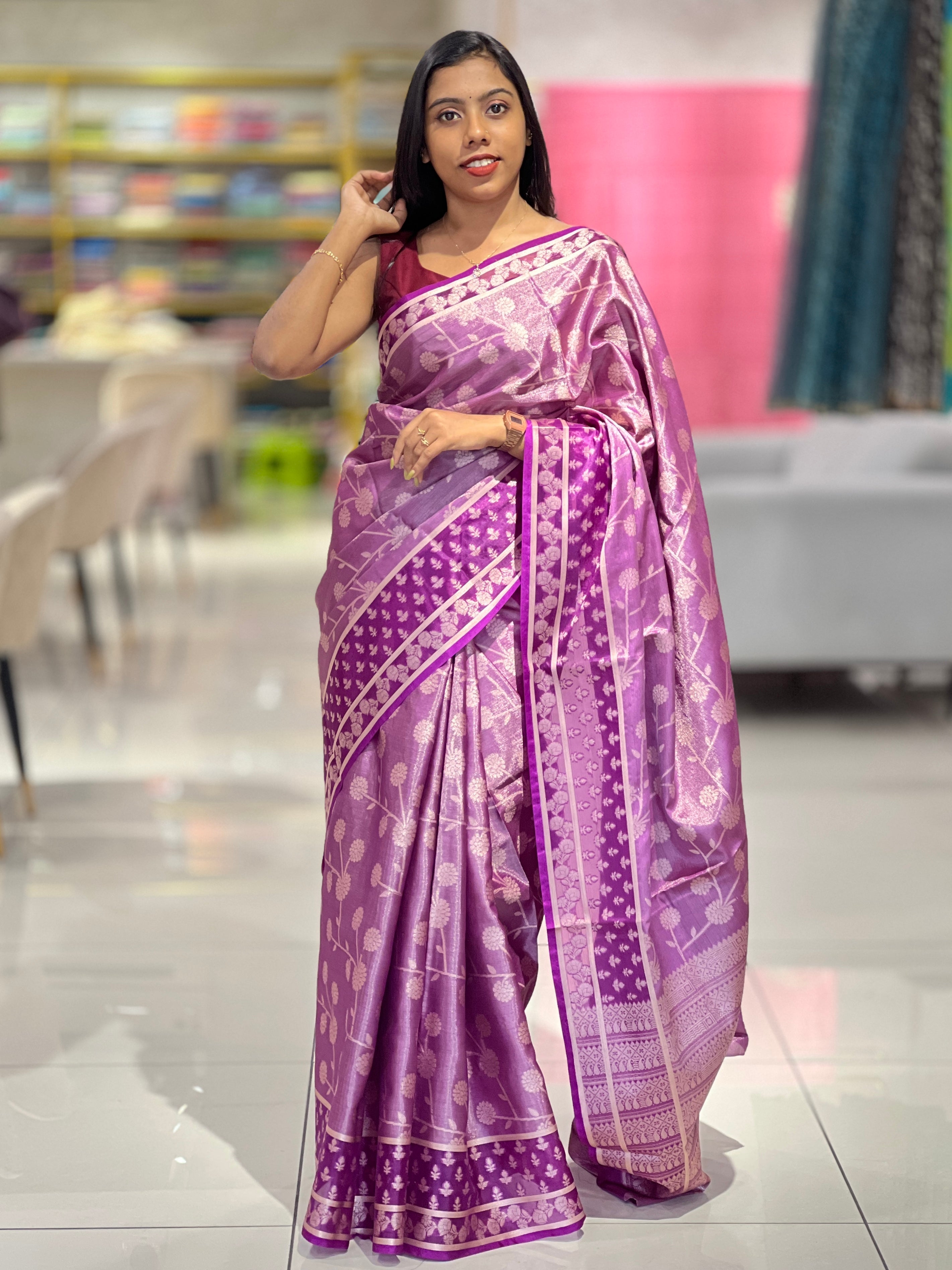 • Zari Weaved Floral Patterned Banarasi Silk Saree | NN378