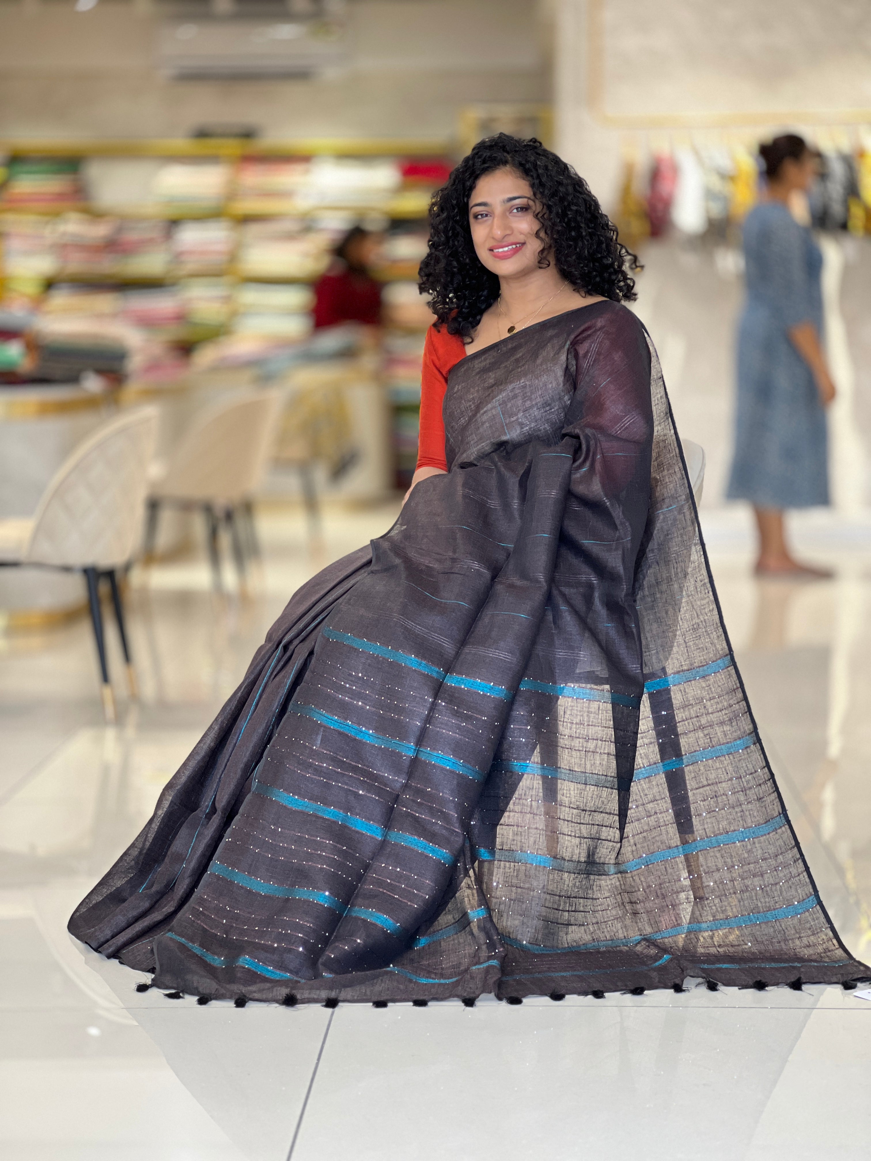- Style: Zari Weaved Stripe Pattern, Tassels Attached