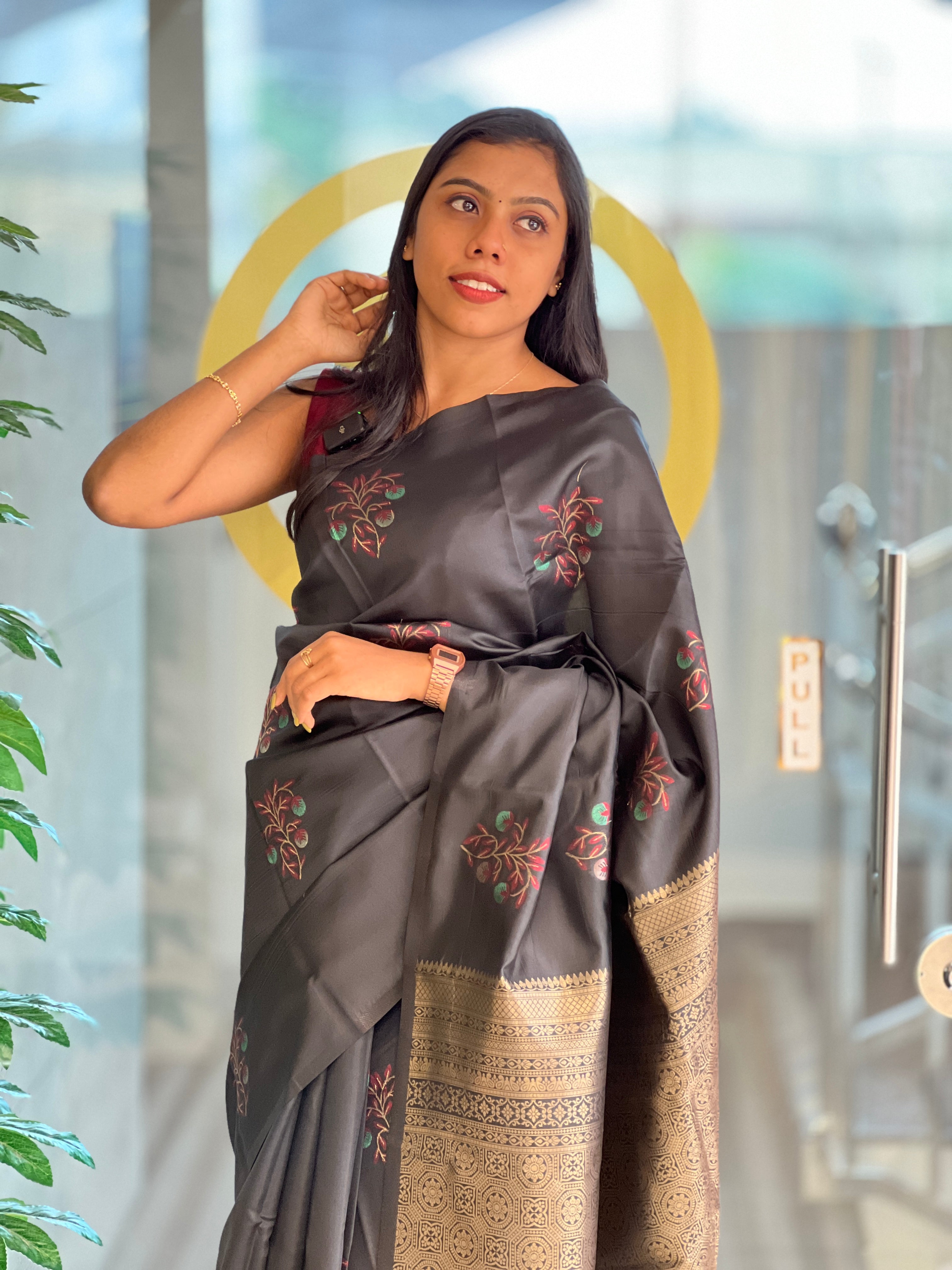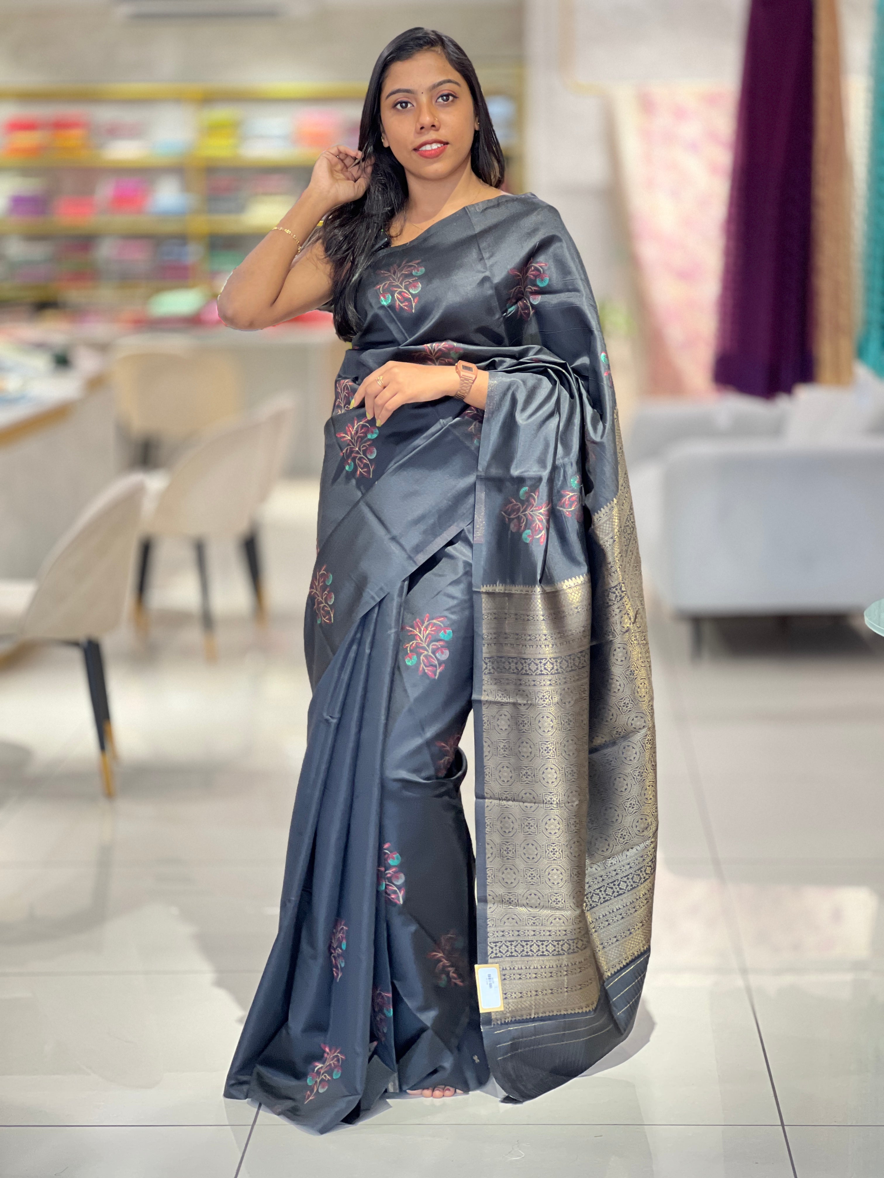 - Style: Thread and Zari Weaving, Scattered Motifs, Brocade Pallu