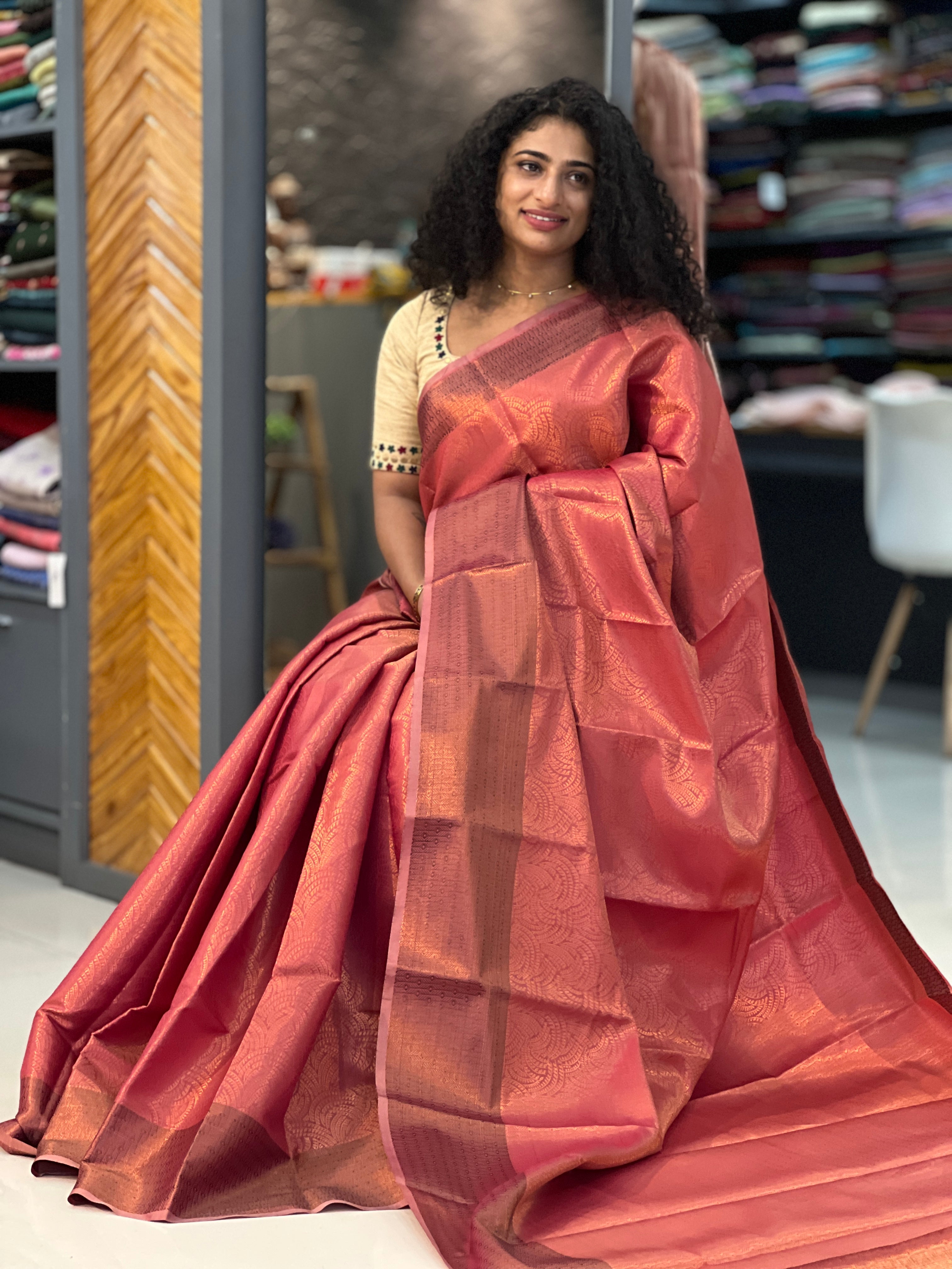 - Style: Antique Golden Zari Weaved Design, Zari Border