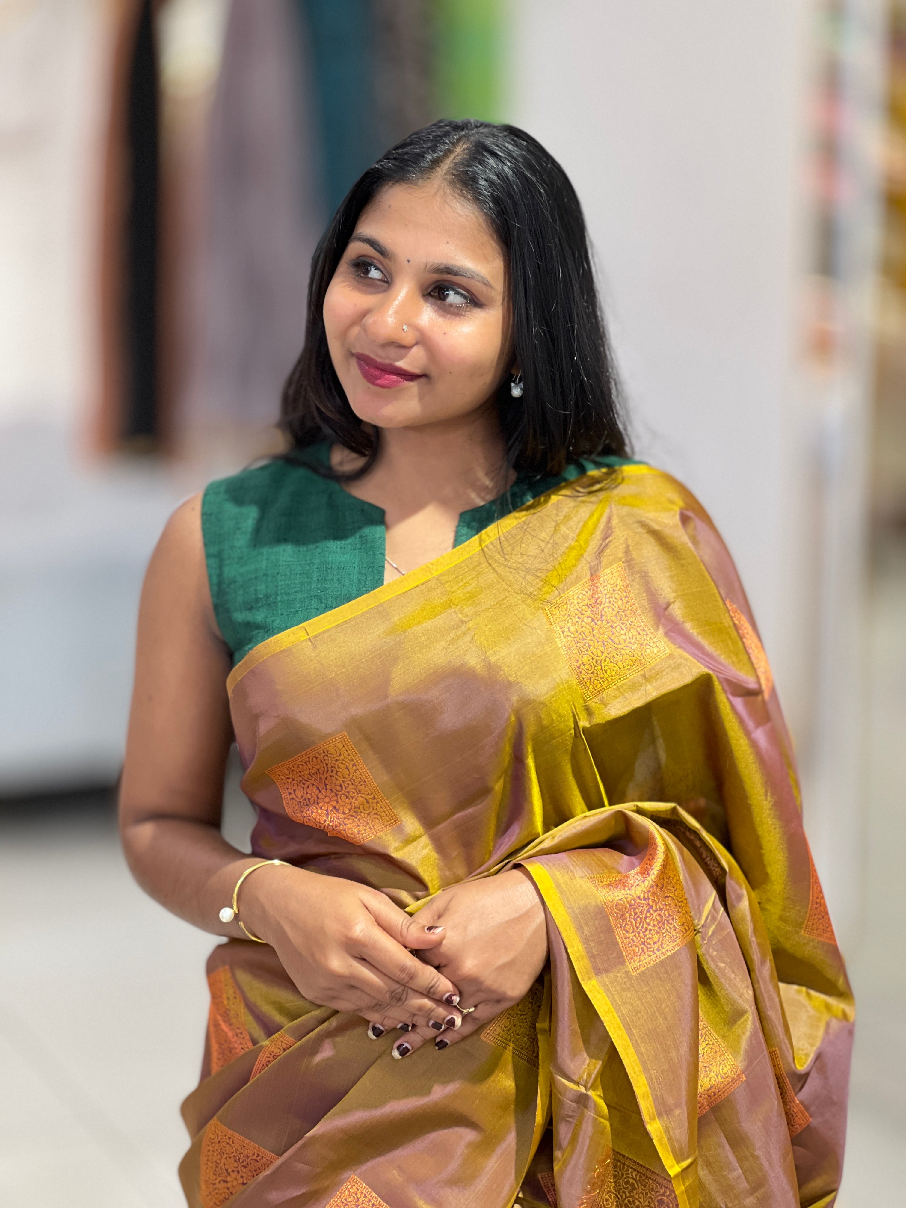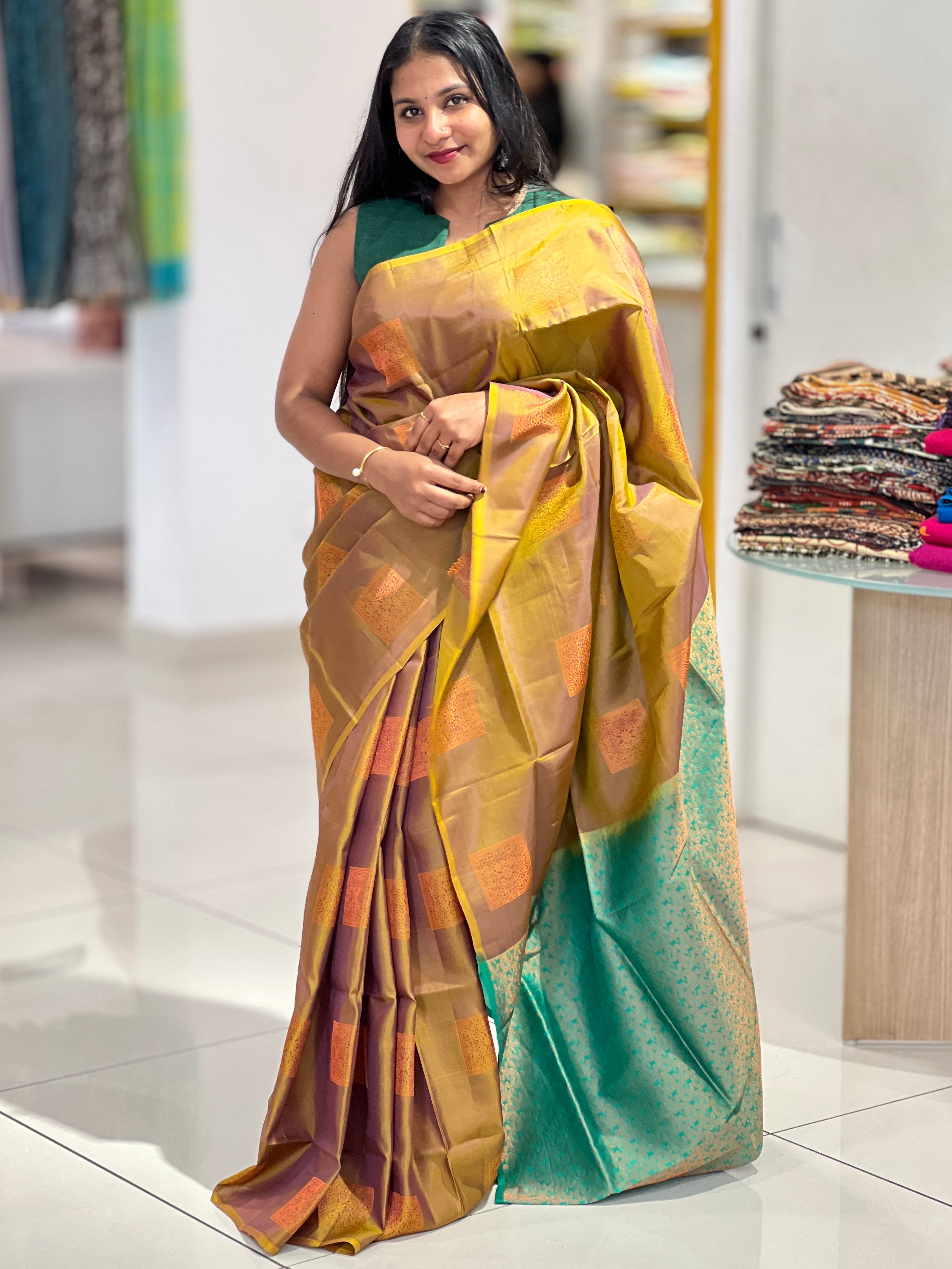 • Style: Zari Weaved, Scattered Square Motif, Paisley Detailed Brocade Pallu