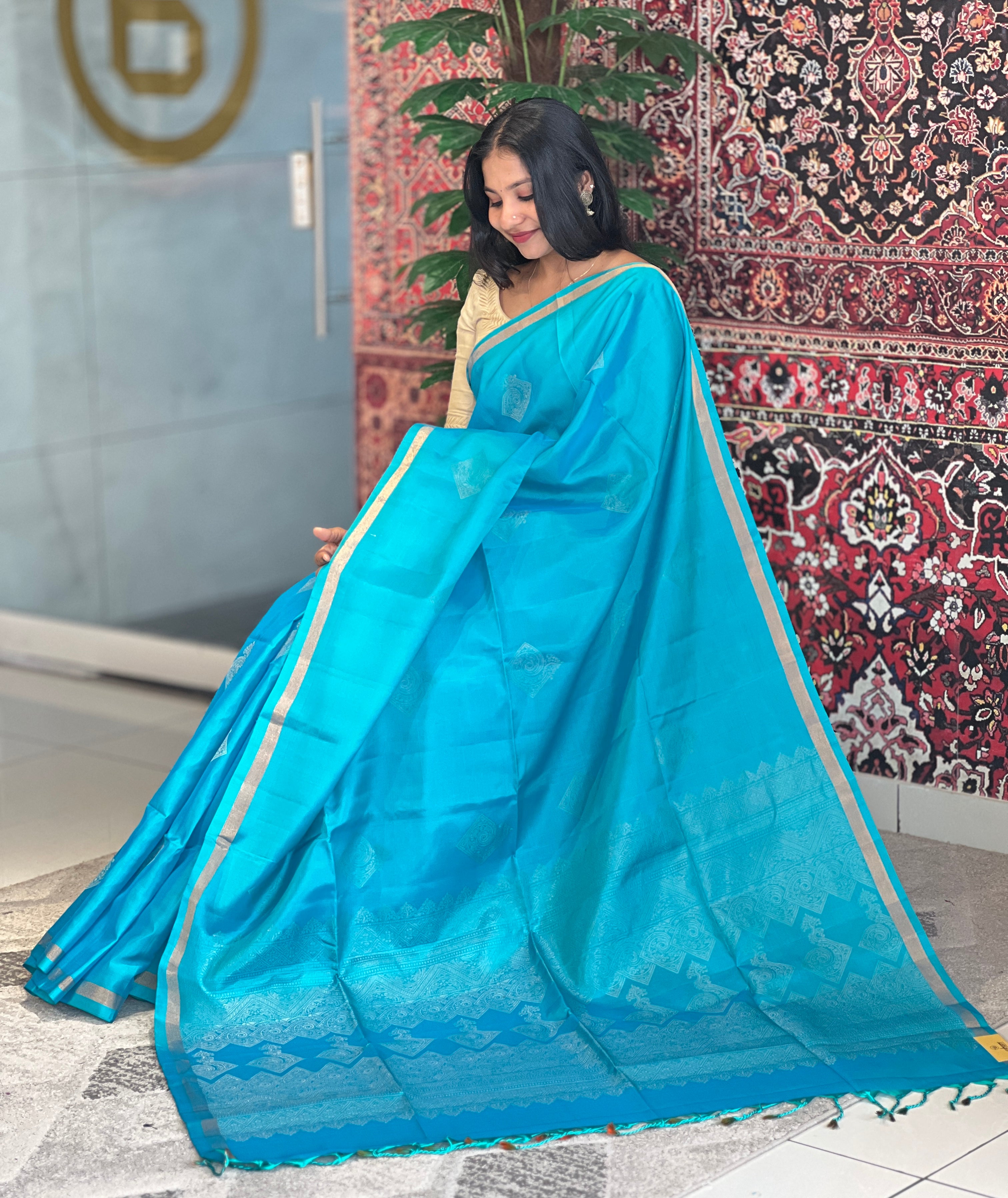 - Style: Scattered Zari Butta, Zari Borders, Traditional Patterned Pallu, Tassels Detailing