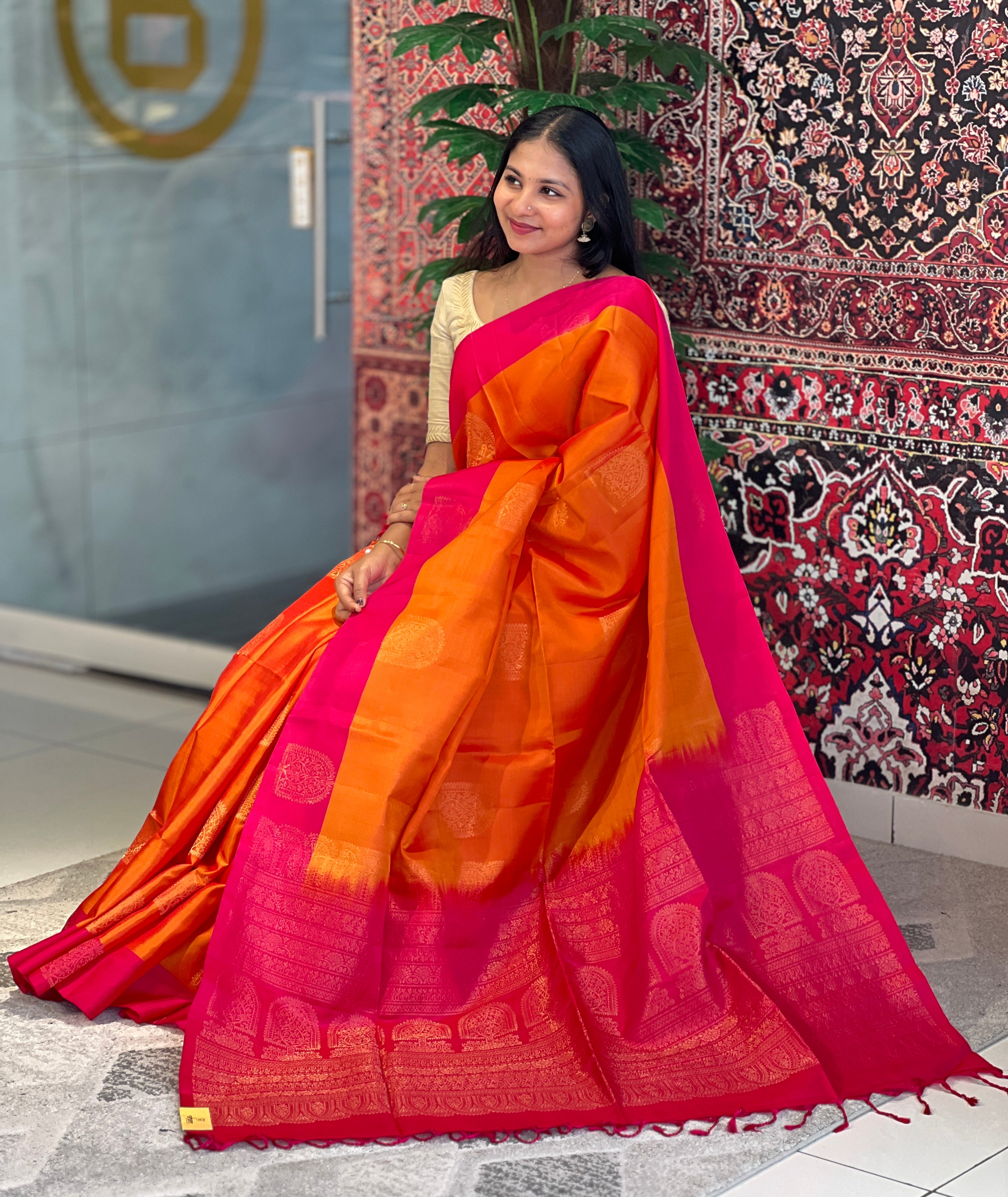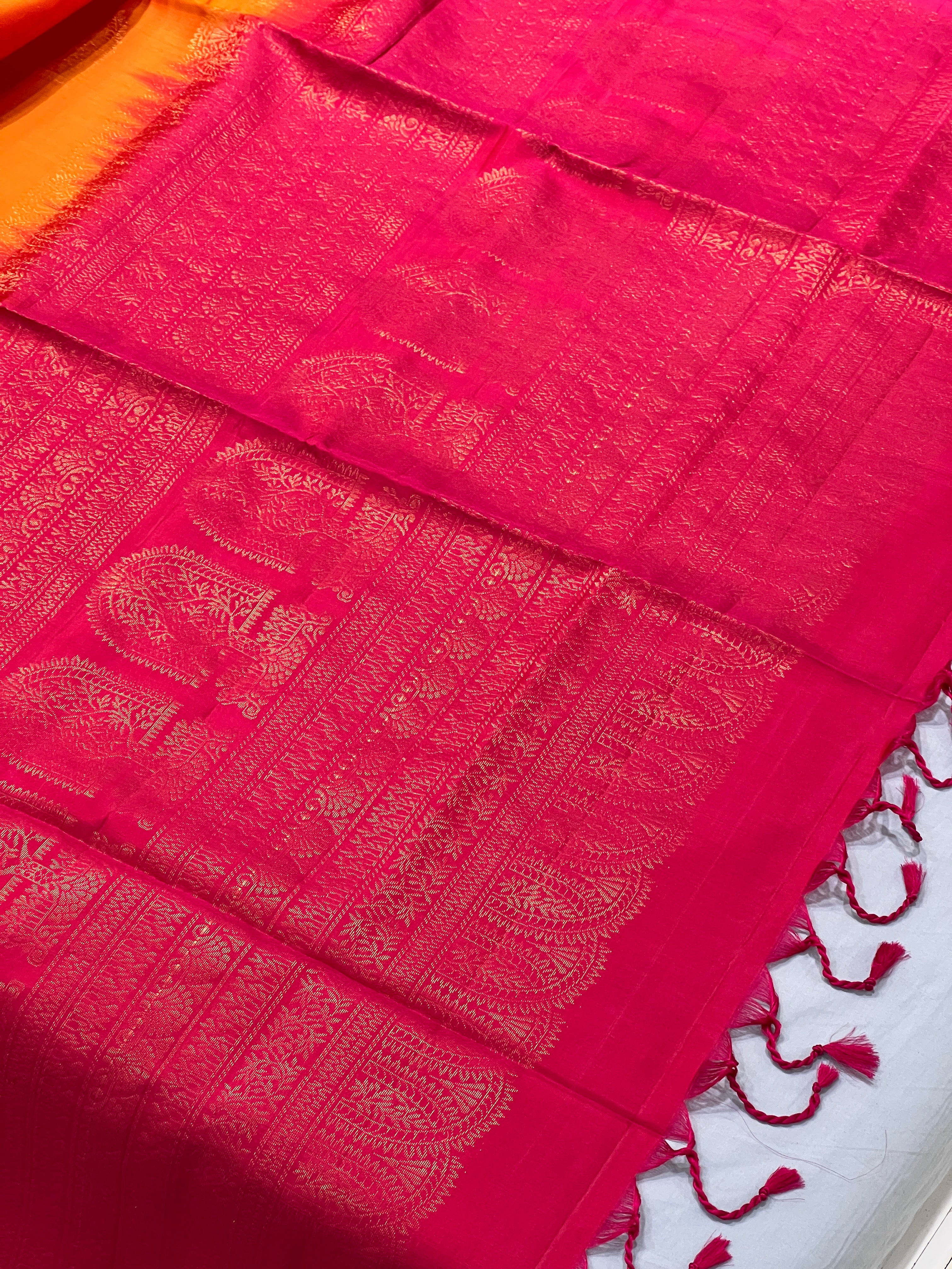 - Style: Scattered Zari Butta, Contrast Zari Weaved Traditional Floral Patterned Borders & Pallu, Tassels Detailing