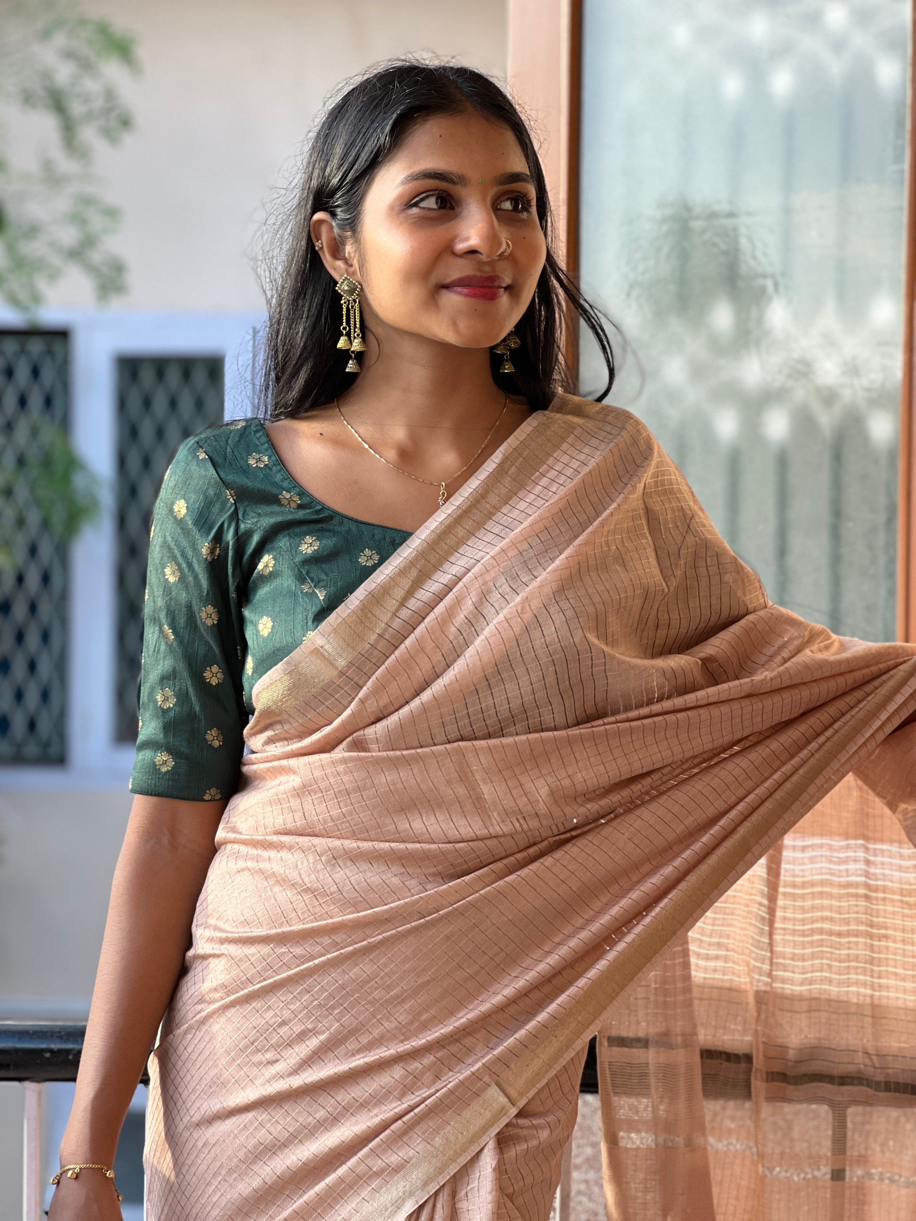 - Style: Zari Check Pattern, Zari Border, Stripe Patterned Pallu