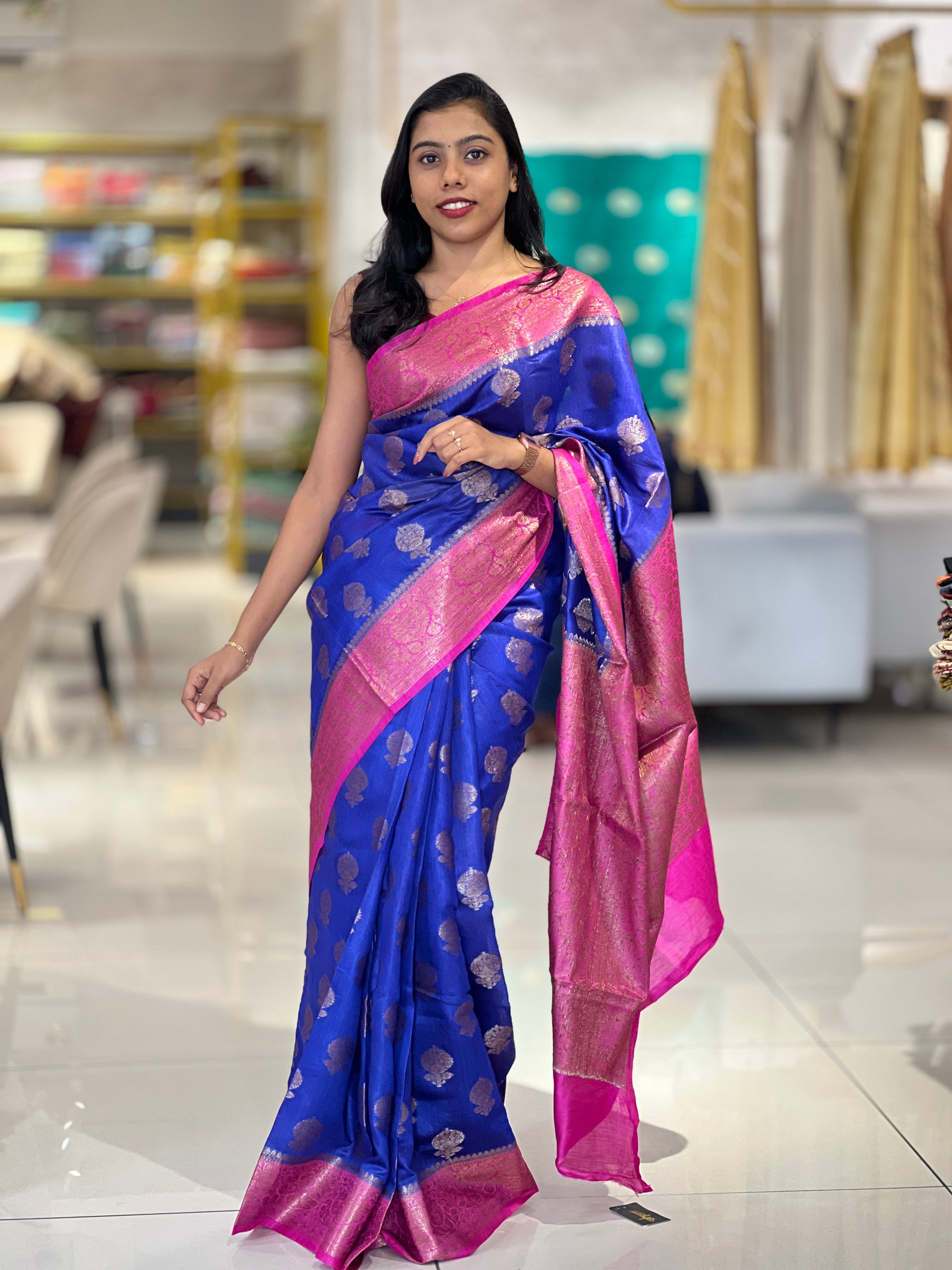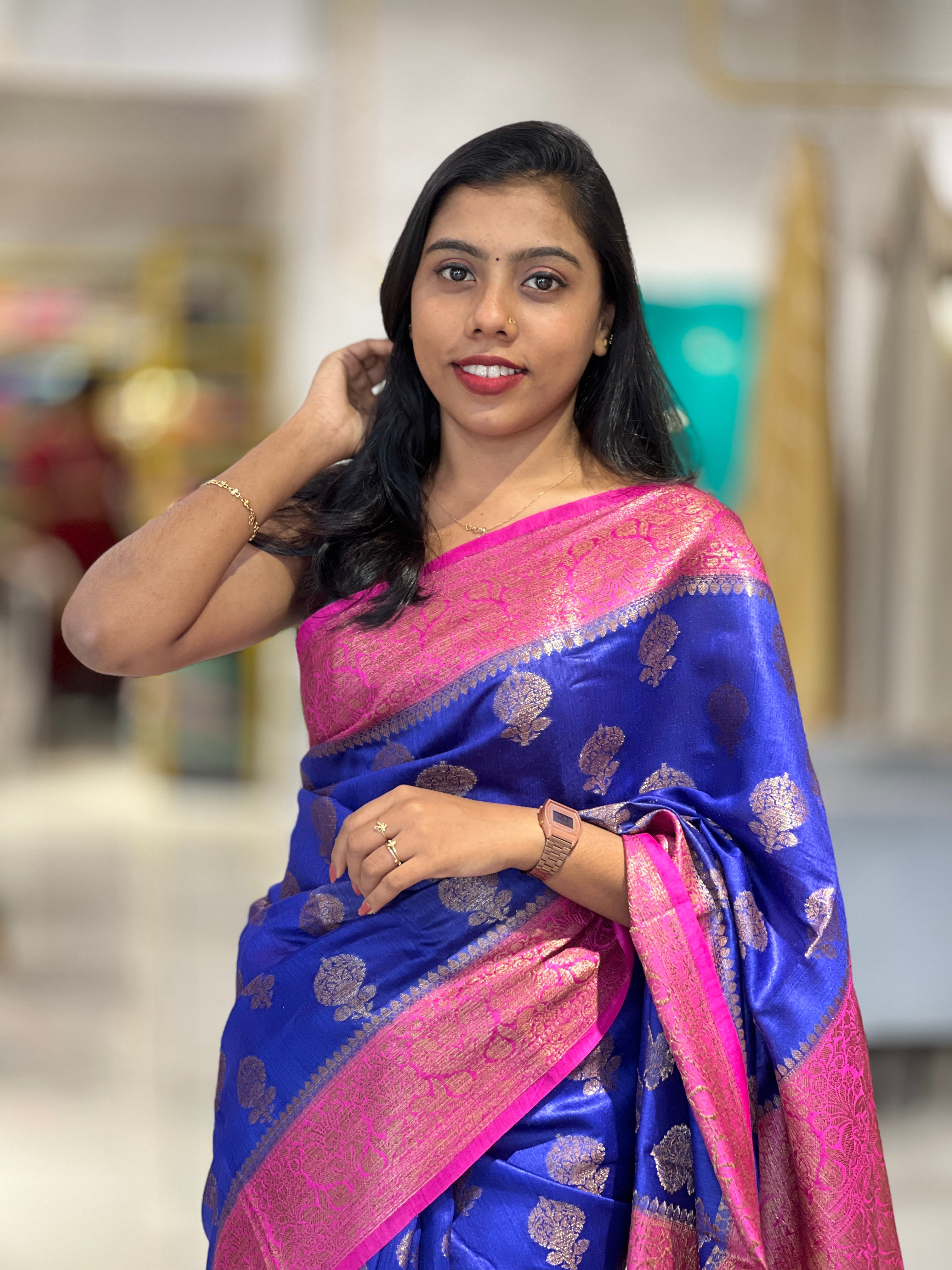 - Style: Banarasi Pattern, Zari Weaved Buta Design, Contrast Floral Patterned Border &Pallu