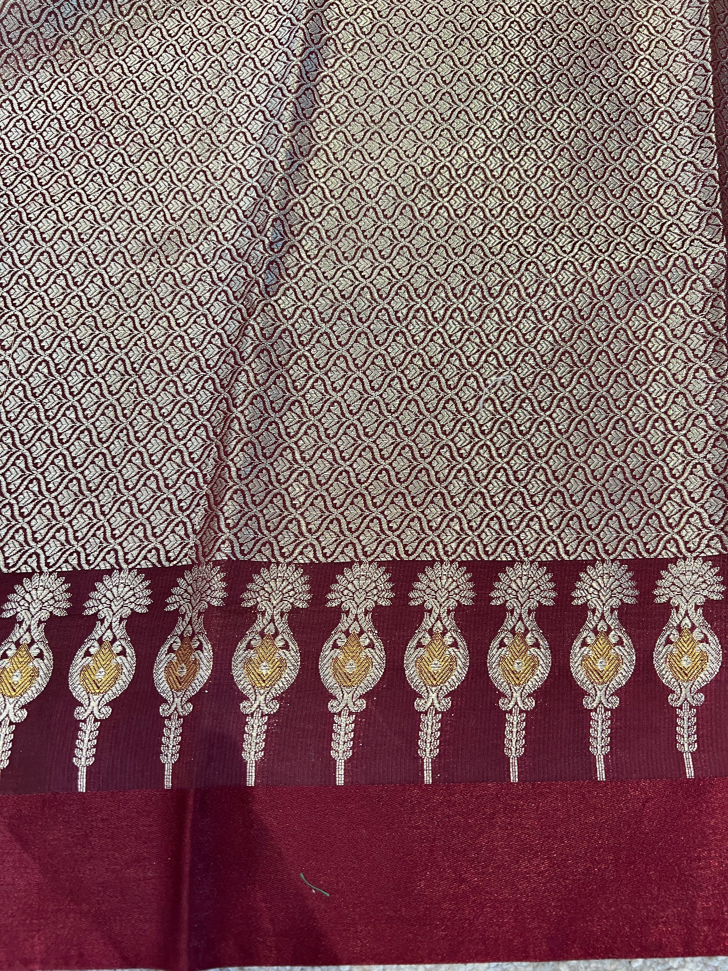 - Style: Banarasi Pattern, Light Zari Woven, Scattered Floral Buta Detailing, Brocade Patterned Pallu, Power Loom