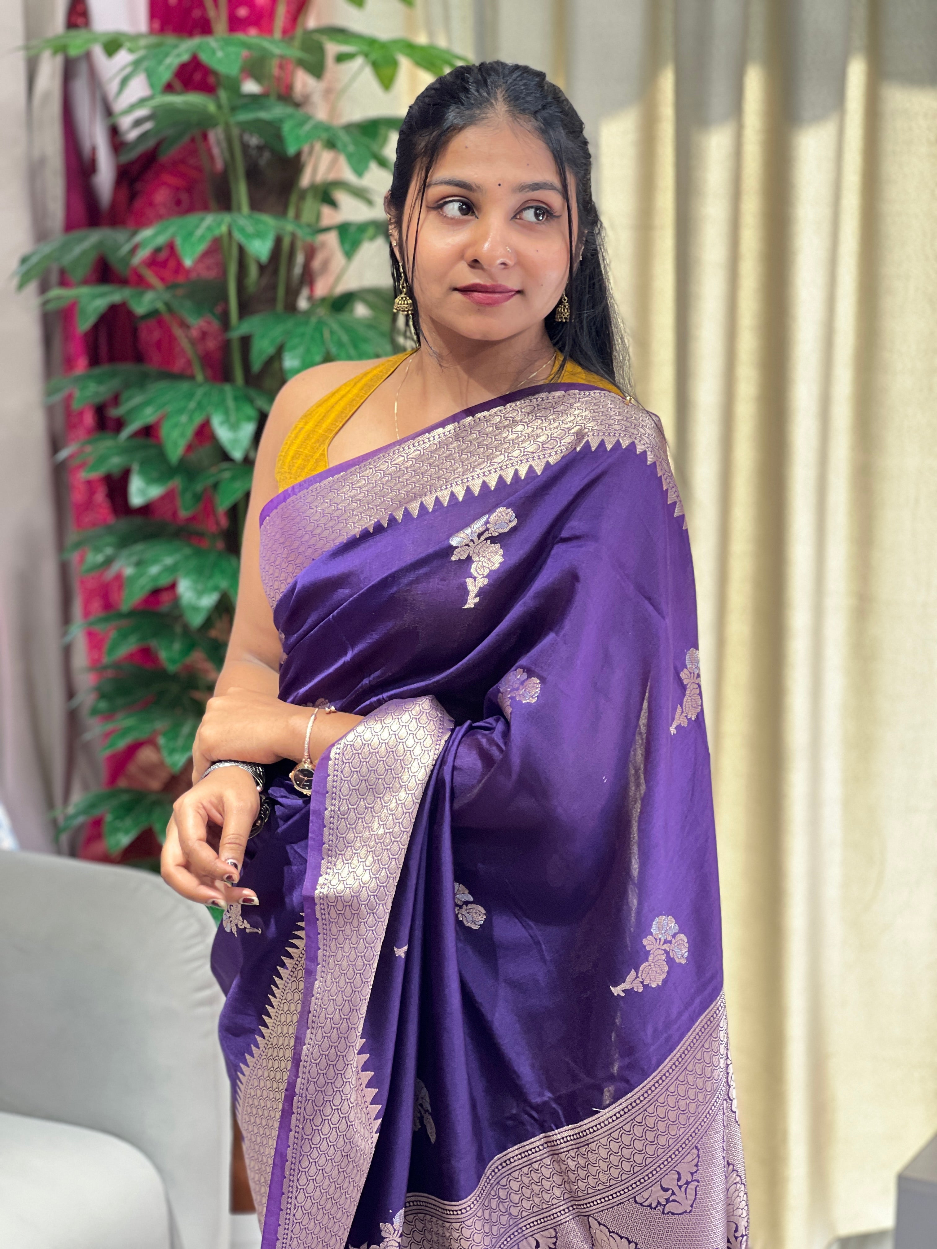 - Style: Zari Weaving, Scattered Floral Buttas, Pallu Detailing, Temple Border Detailing