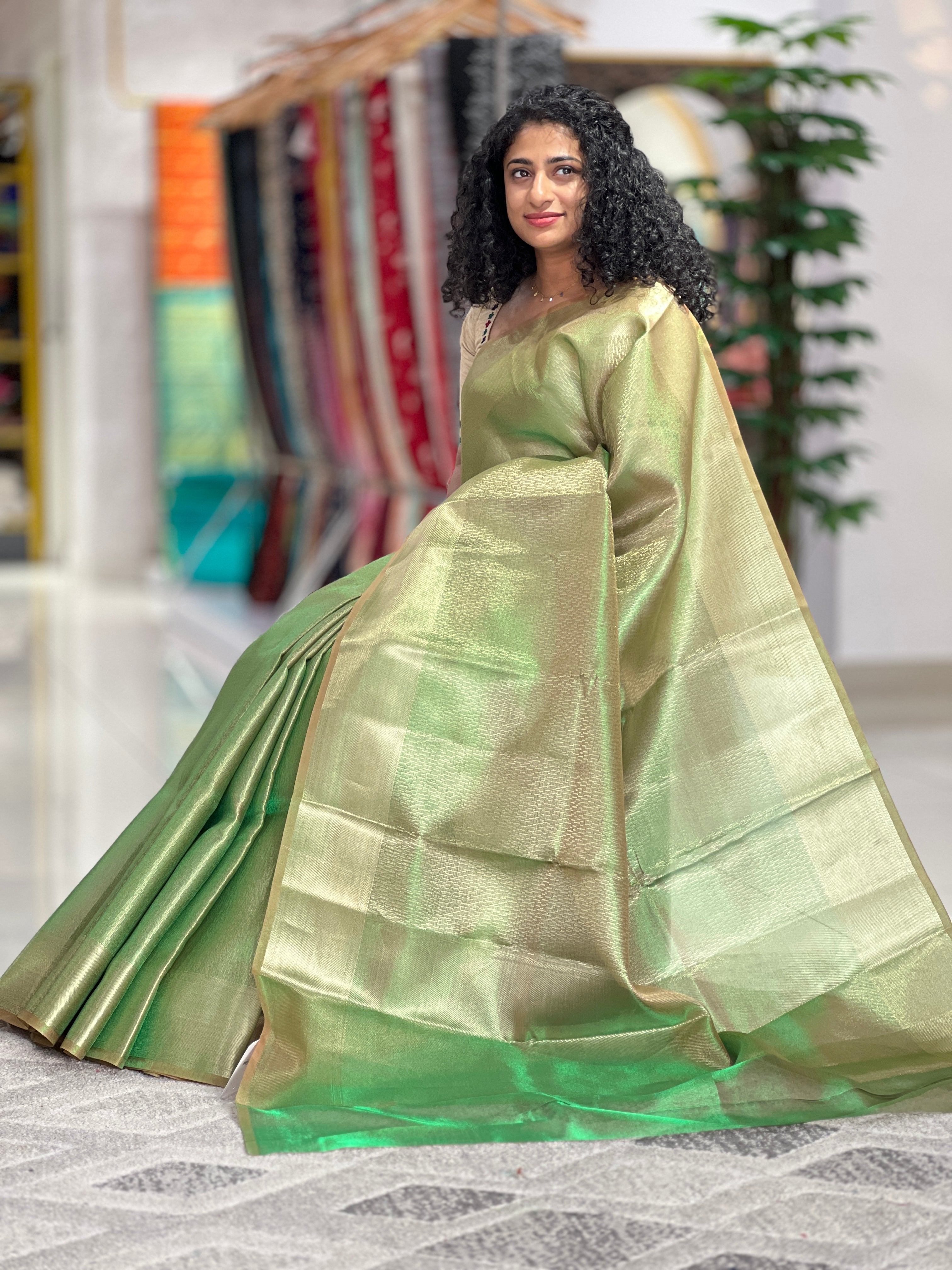 - Style: Textured Weaving Pattern, Double Shaded, Zari Woven, Diagonal Weaving Patterned Pallu & Borders