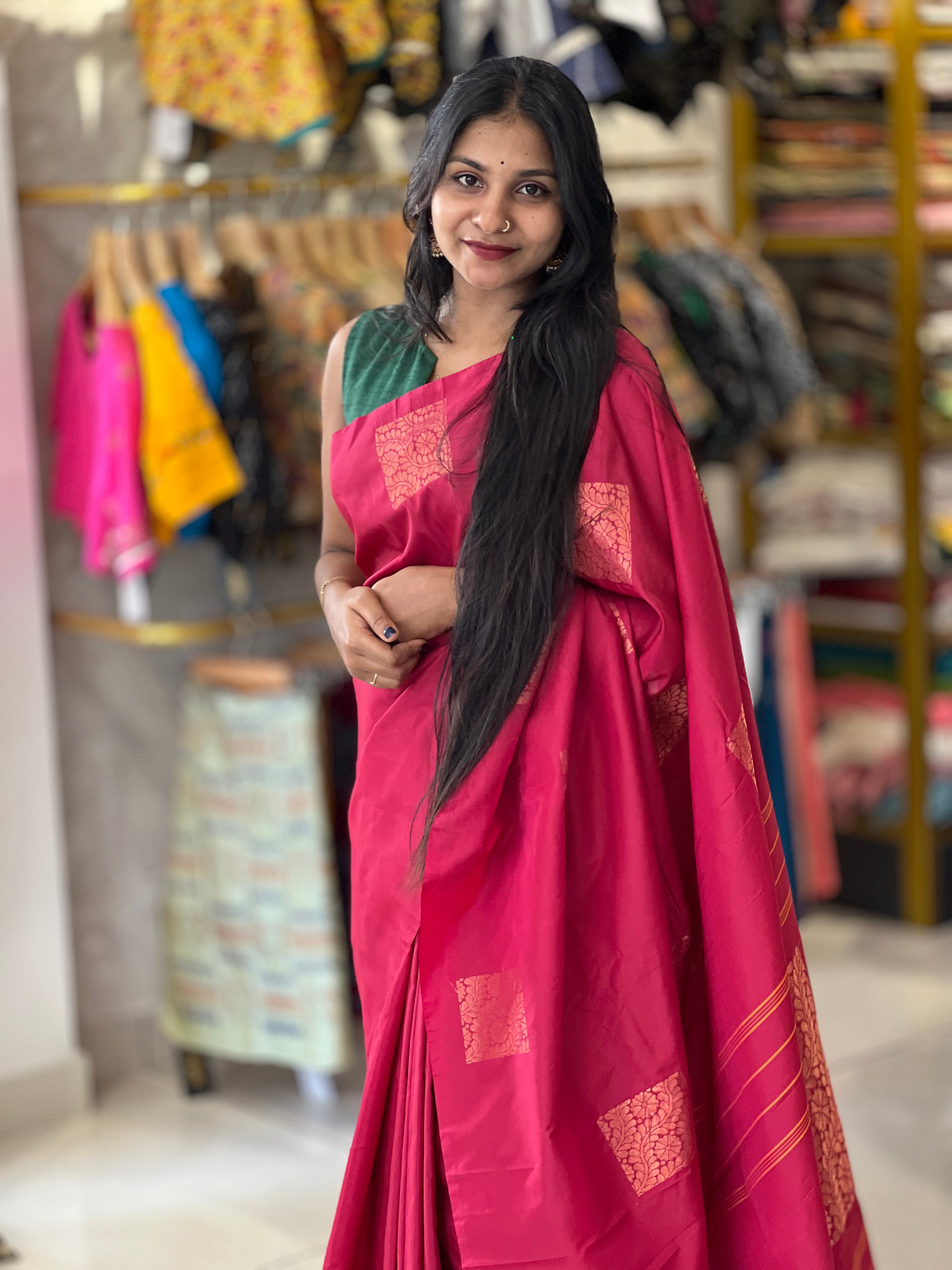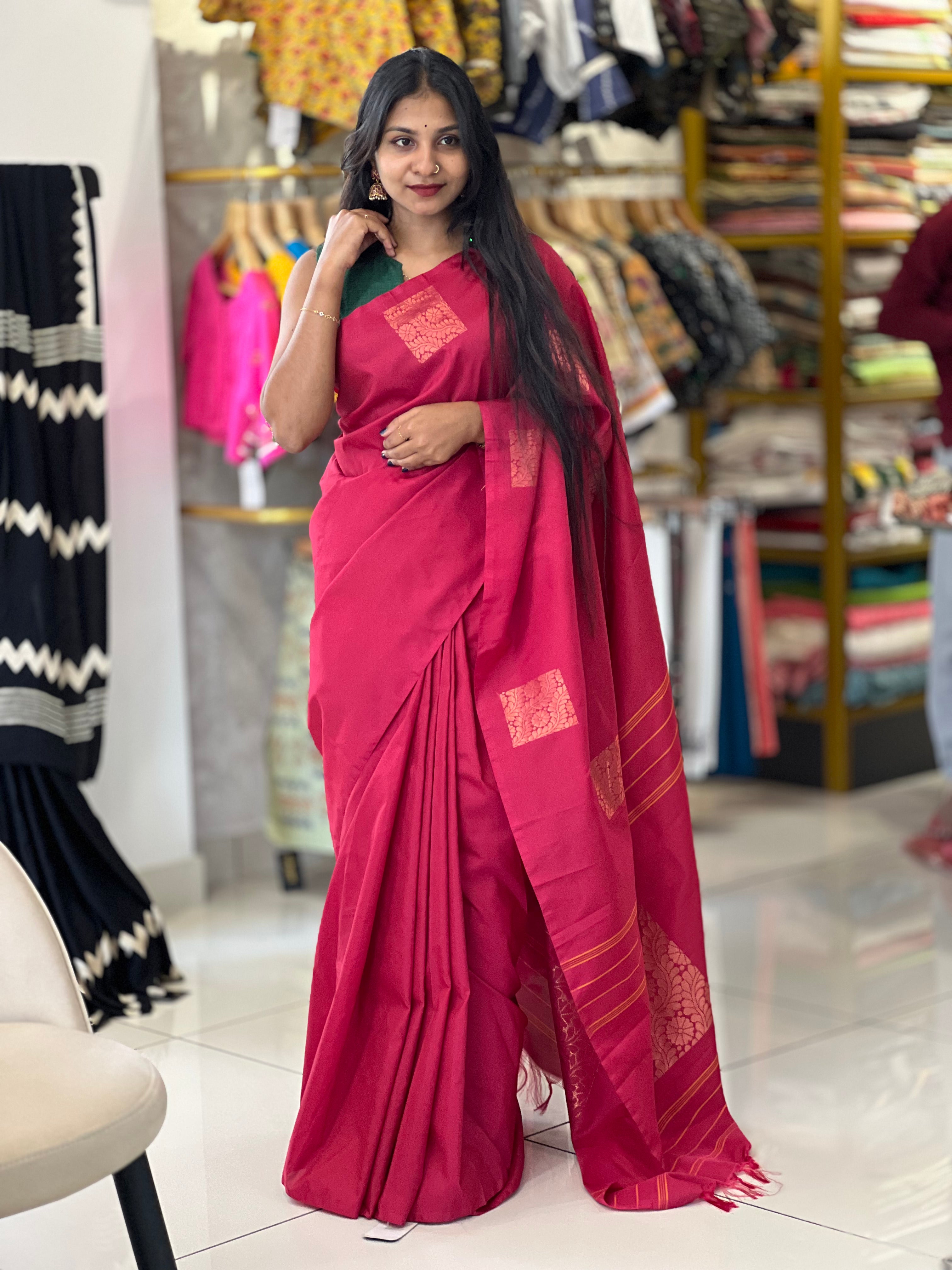- Style: Zari Woven, Square With Floral Patterned Butas, Stripe Detailed Pallu, Floral Patterned Pallu, Tassels Detailing