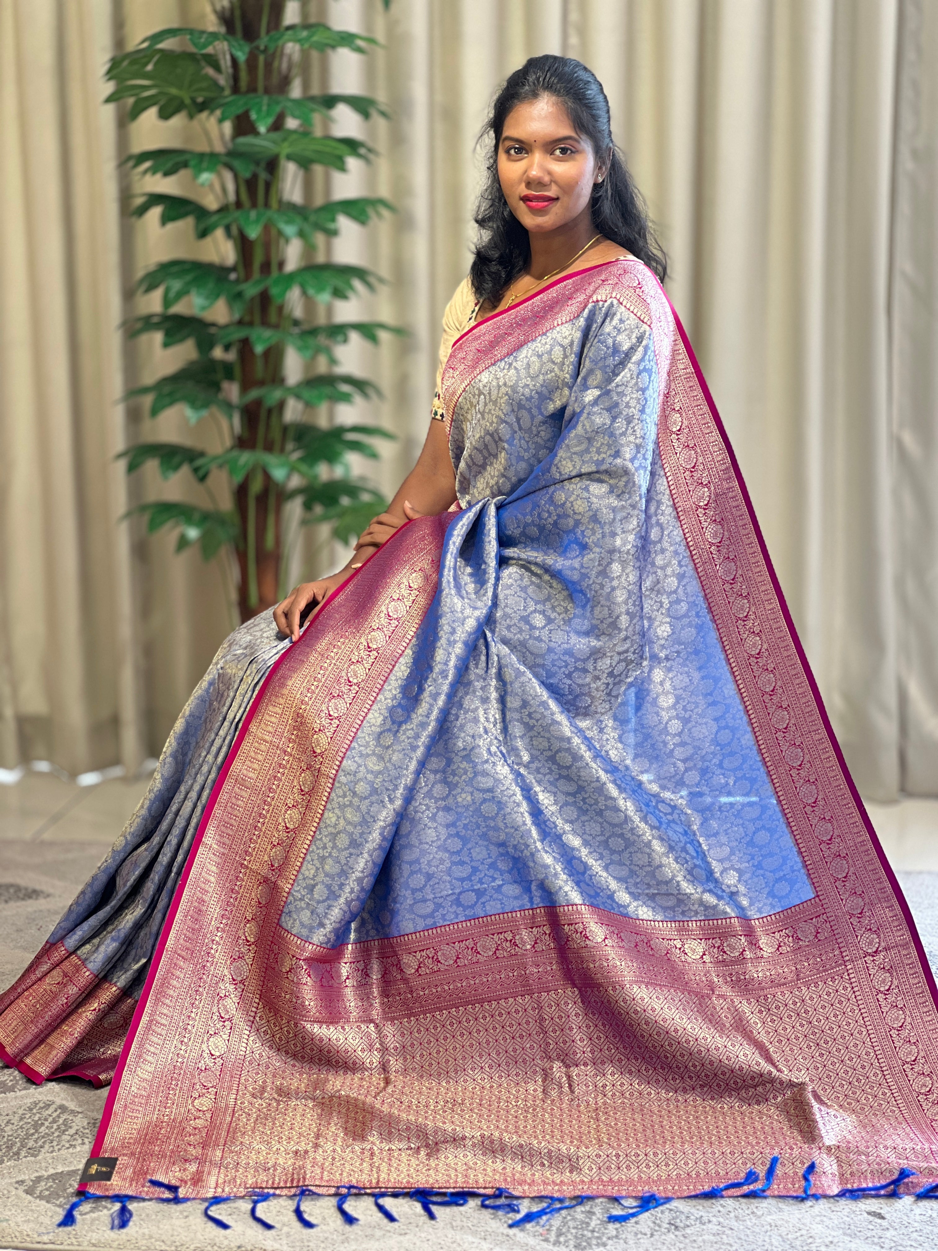 • Zari Woven Floral Patterned Banarasi Silk Saree | KAC157