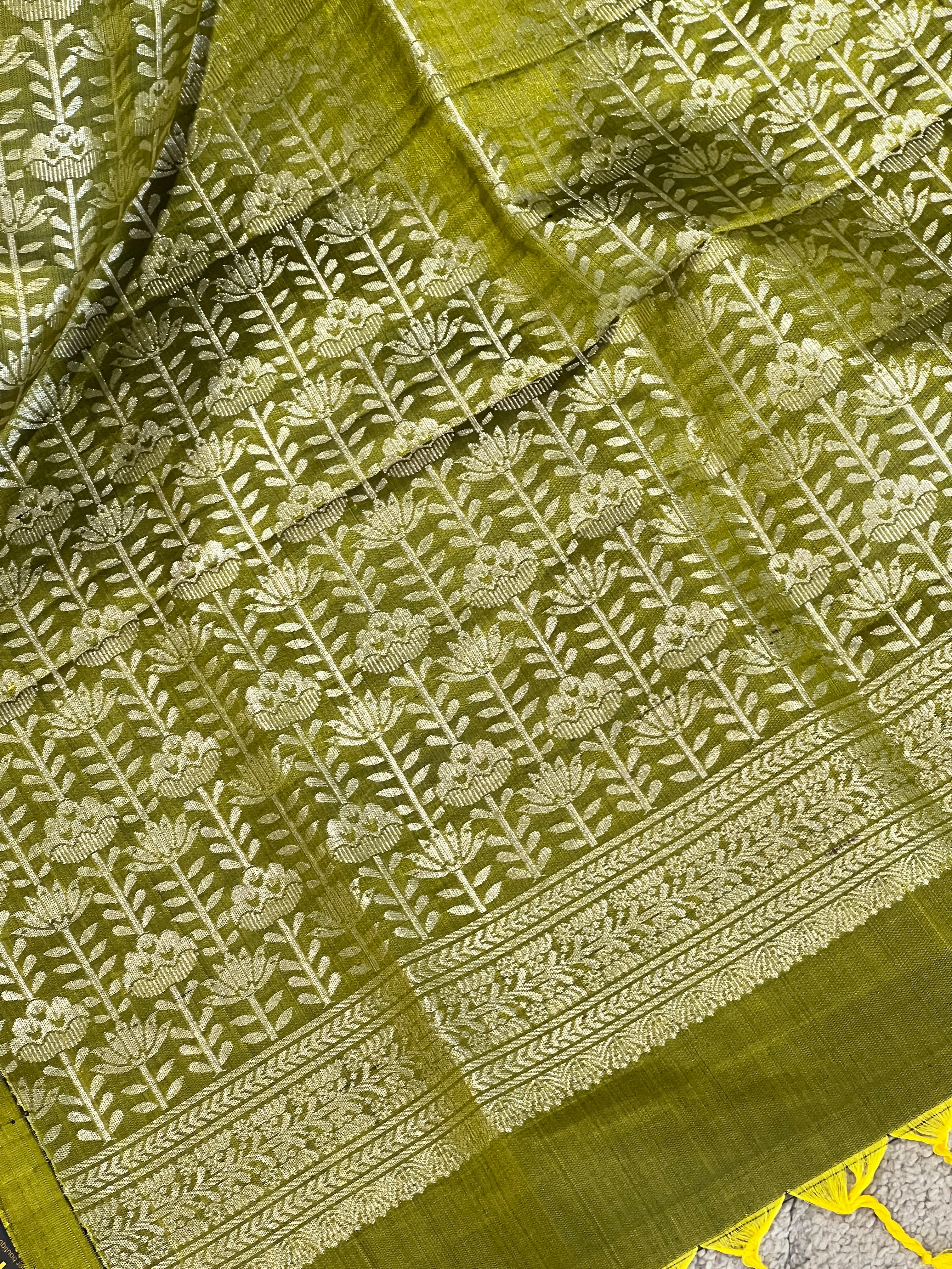 - Style: Zari Woven Stripe Pattern, Floral Stripe Patterned Contrast Pallu, Contrast Borders, Handloom