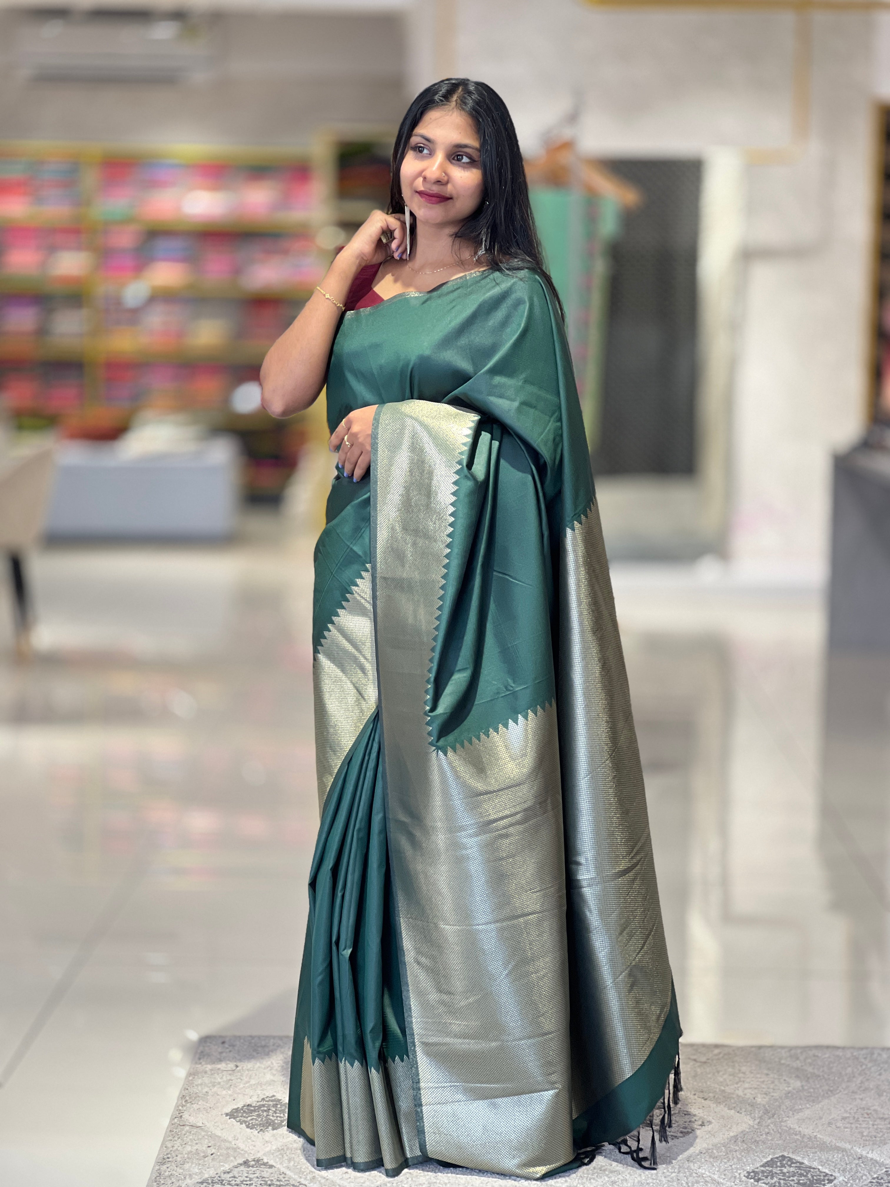 • Style: Zari Woven Diamond Check Pattern With Temple Border Detailed Pallu And Lower Border