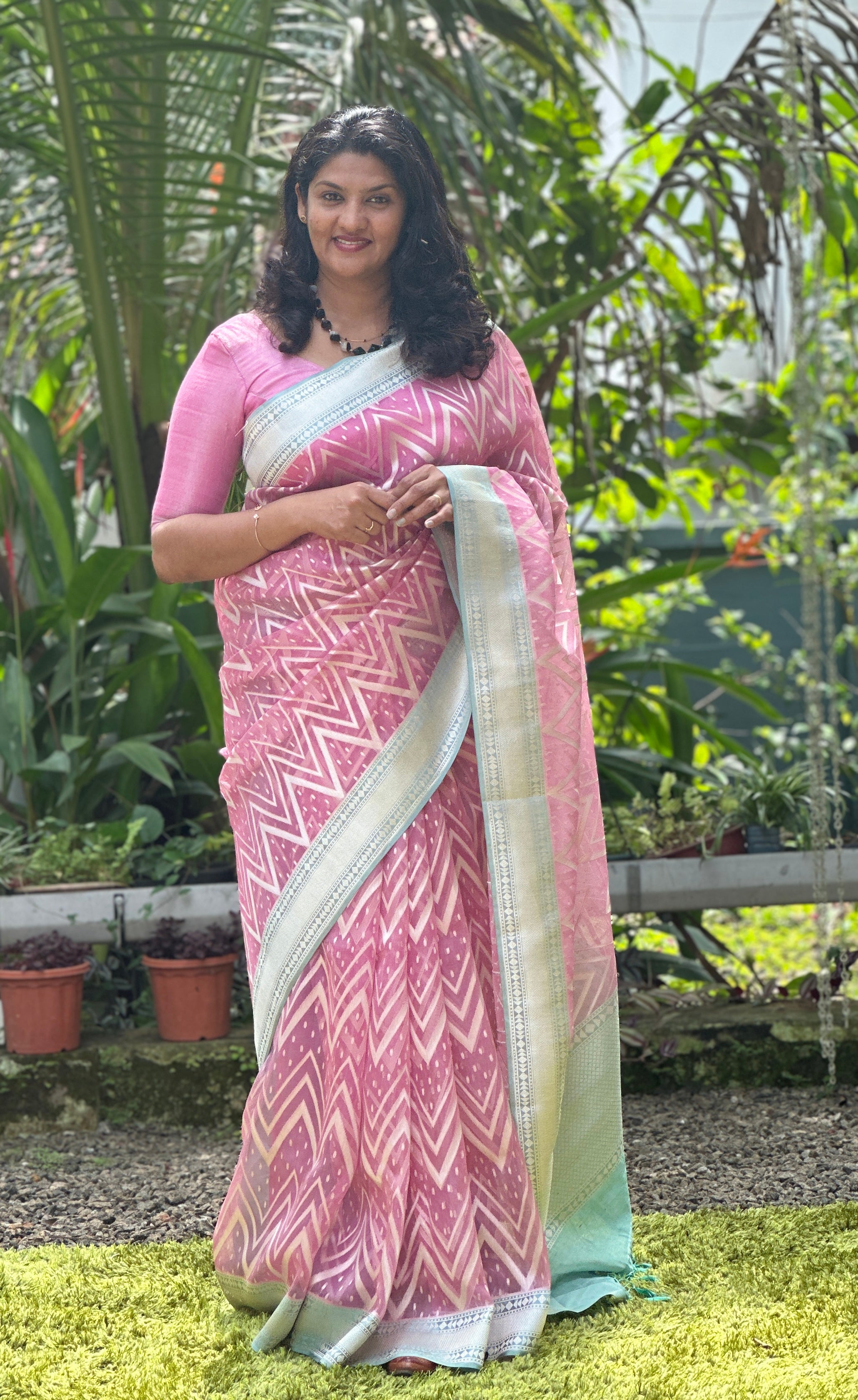 - Style: Zig Zag Pattern Banarasi Weaving Design, Silver Zari Weaved Border