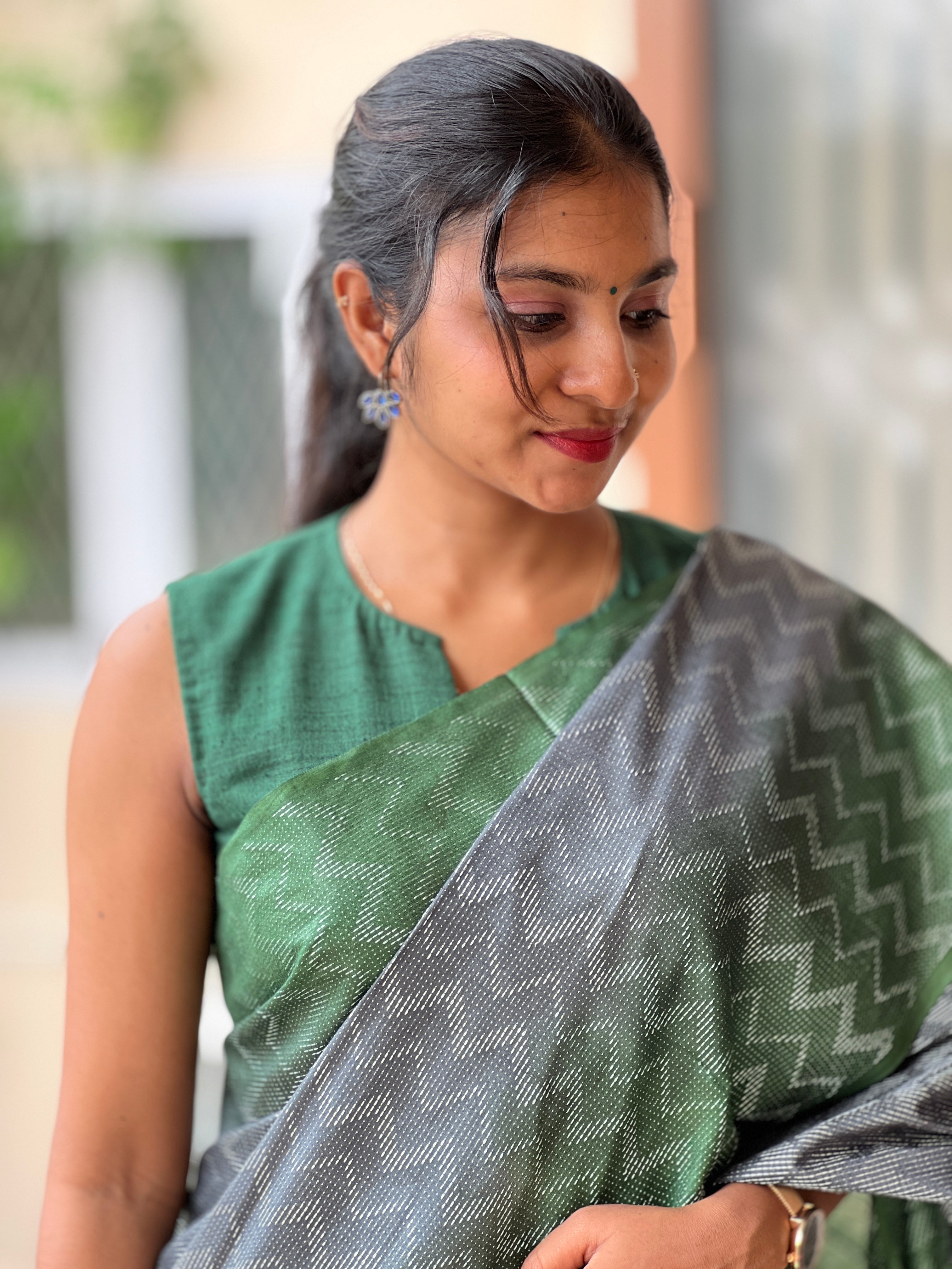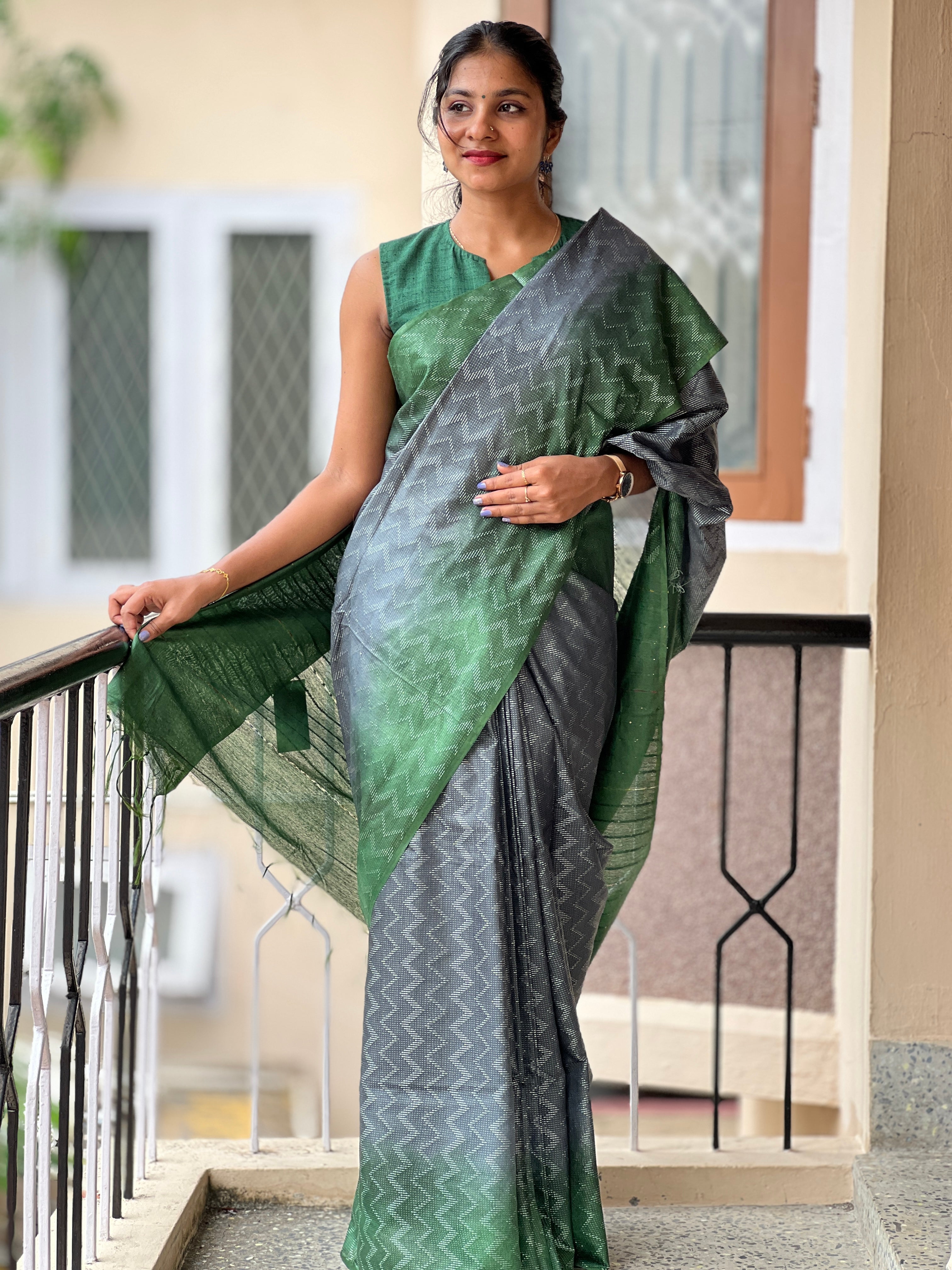 - Style: Kantha Weaving Pattern Zig Zag Design, Shaded Finish, Kesiya Weaving Pattern Pallu
