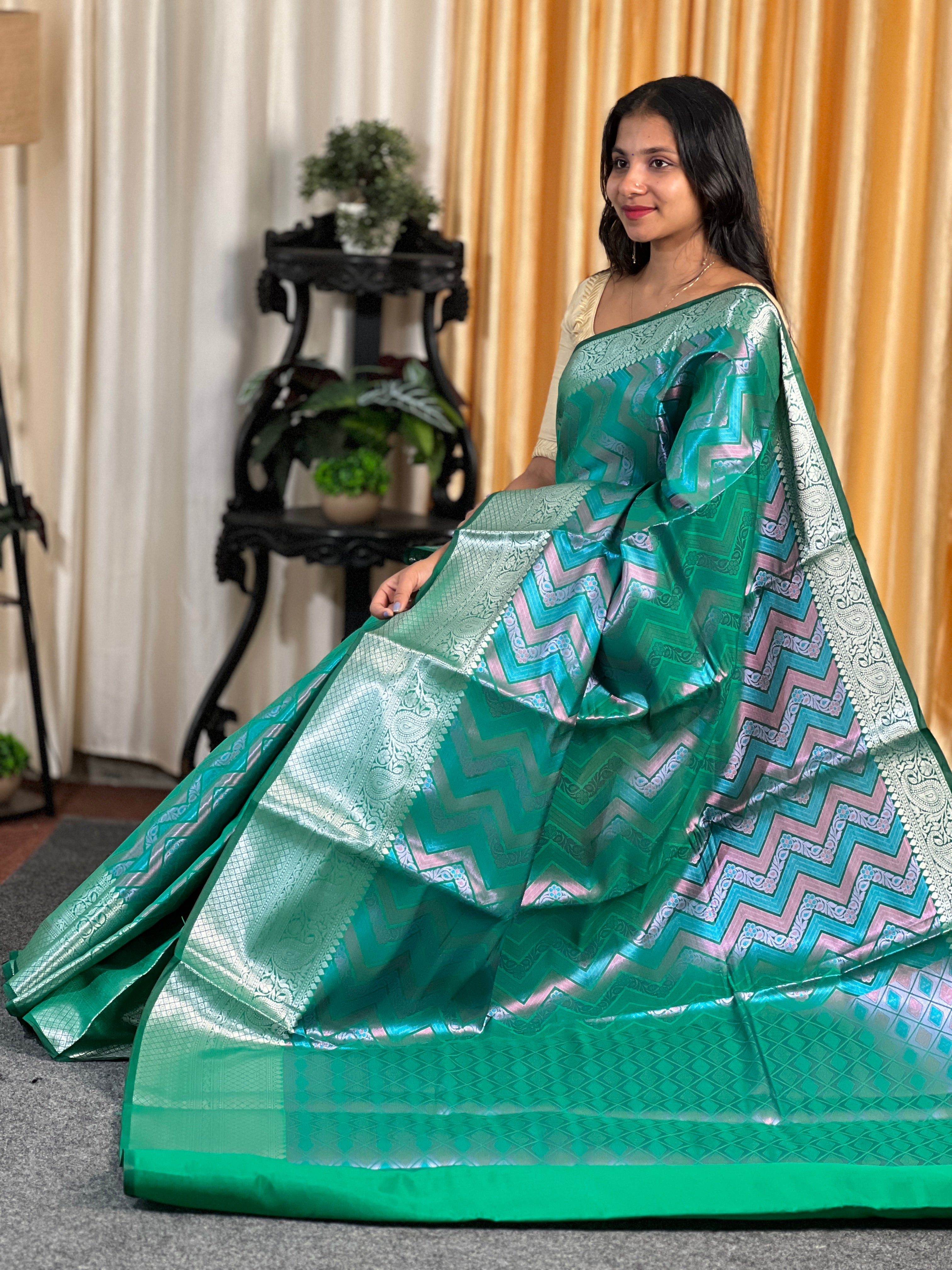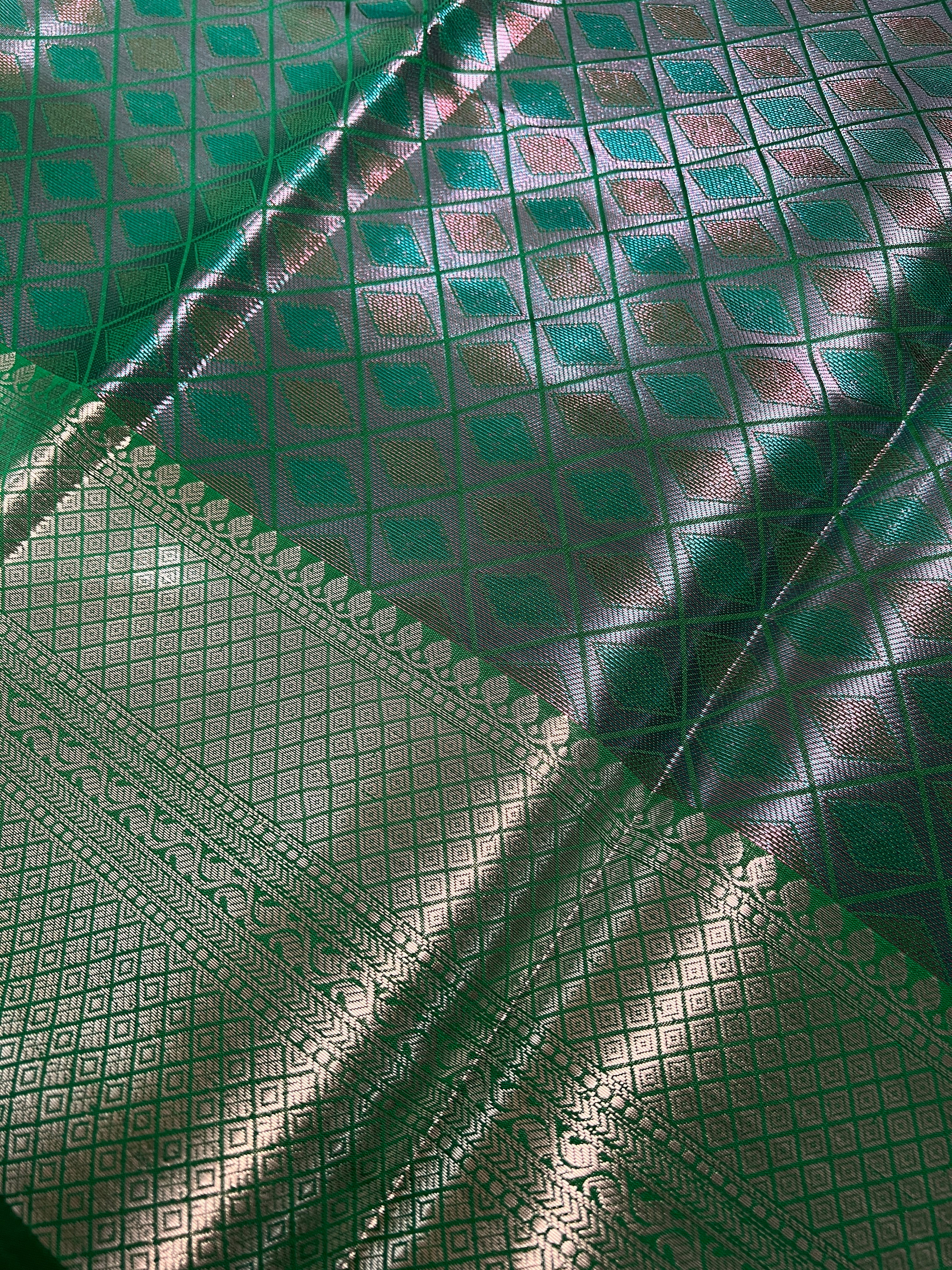 - Style: Banarasi Borders, Diamond & Paisley Patterned Border, Zig Zag Pattern, Diamond Patterned Pallu