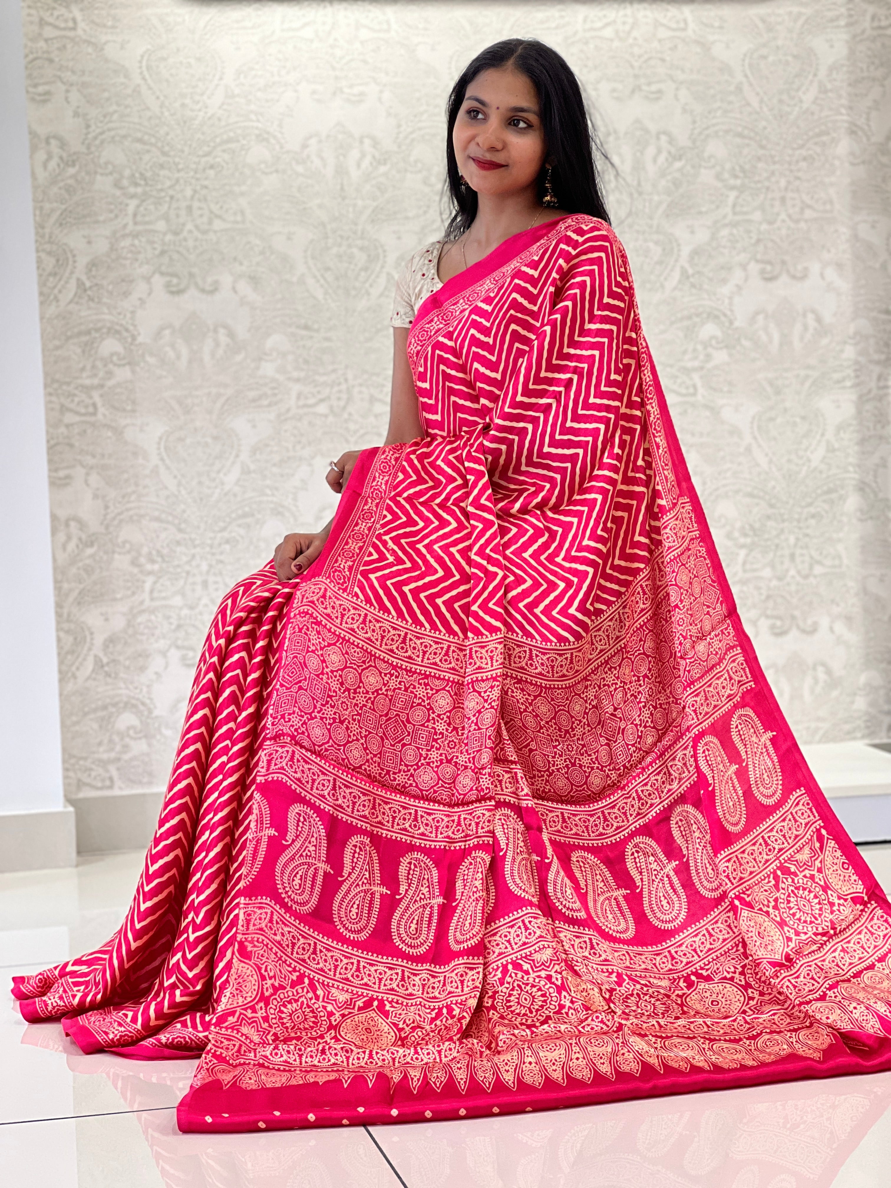• Style: Zig Zag Printed, Pallu Ajrak Pattern