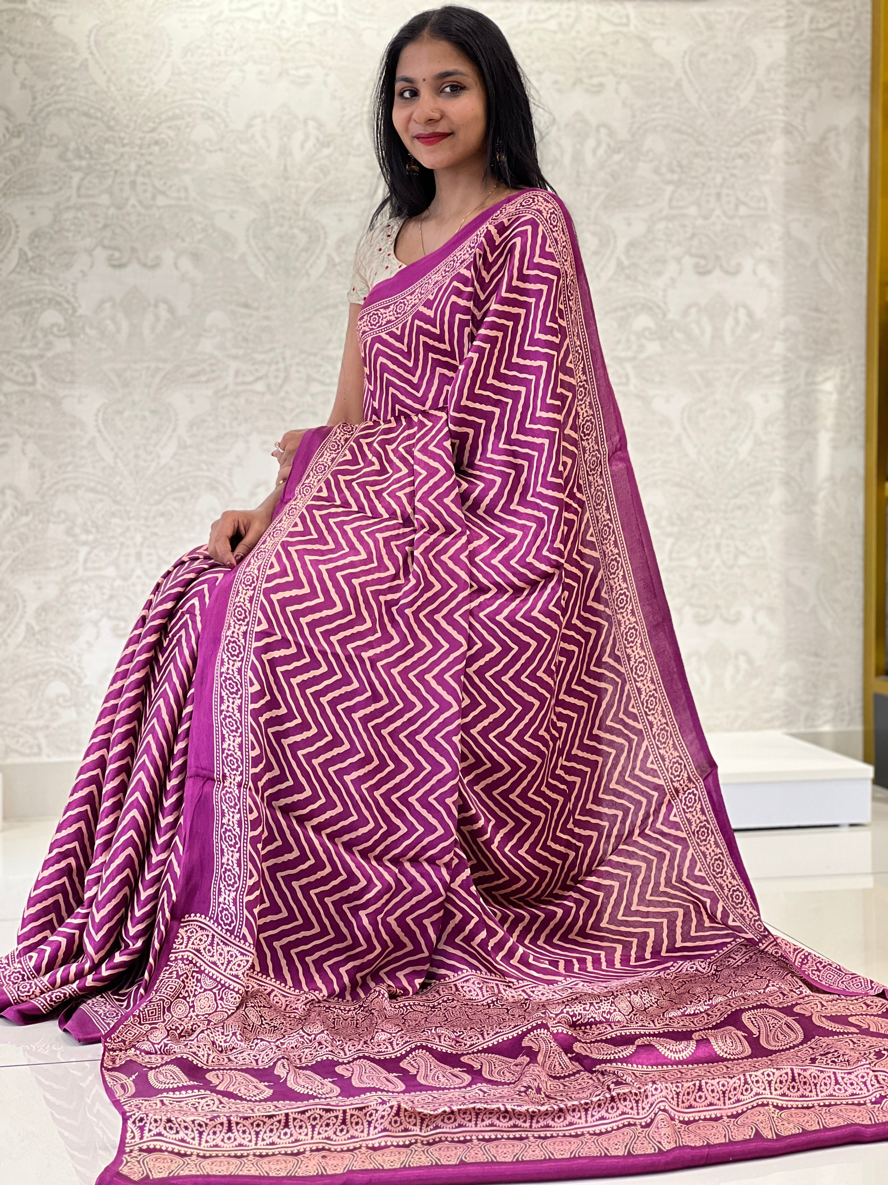 • Zig Zag Printed Modal Saree | SAC108